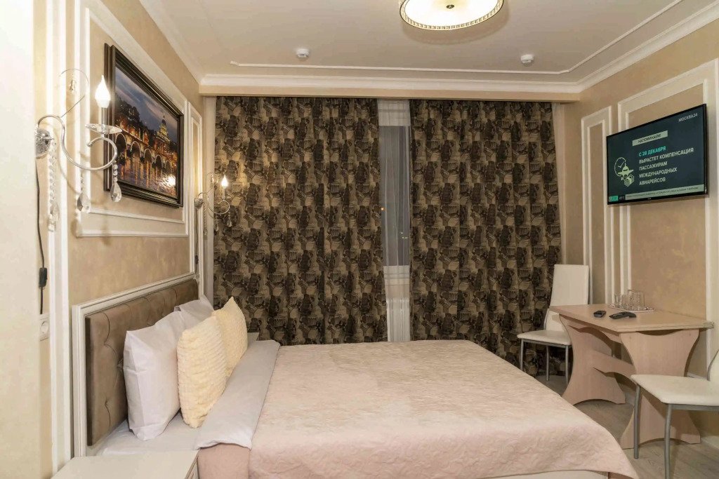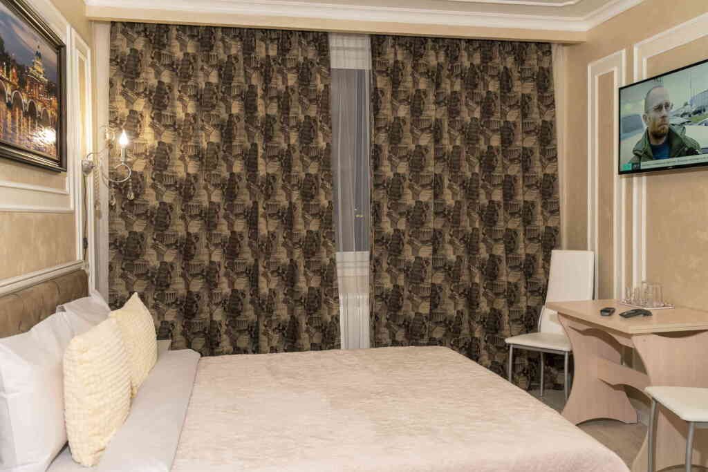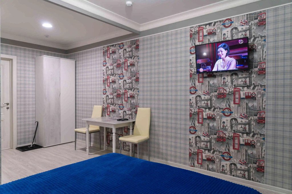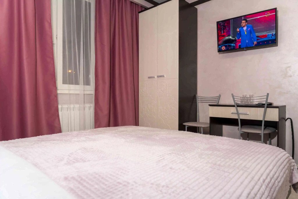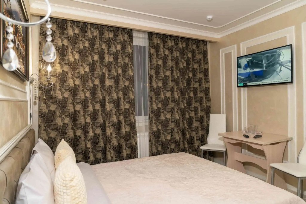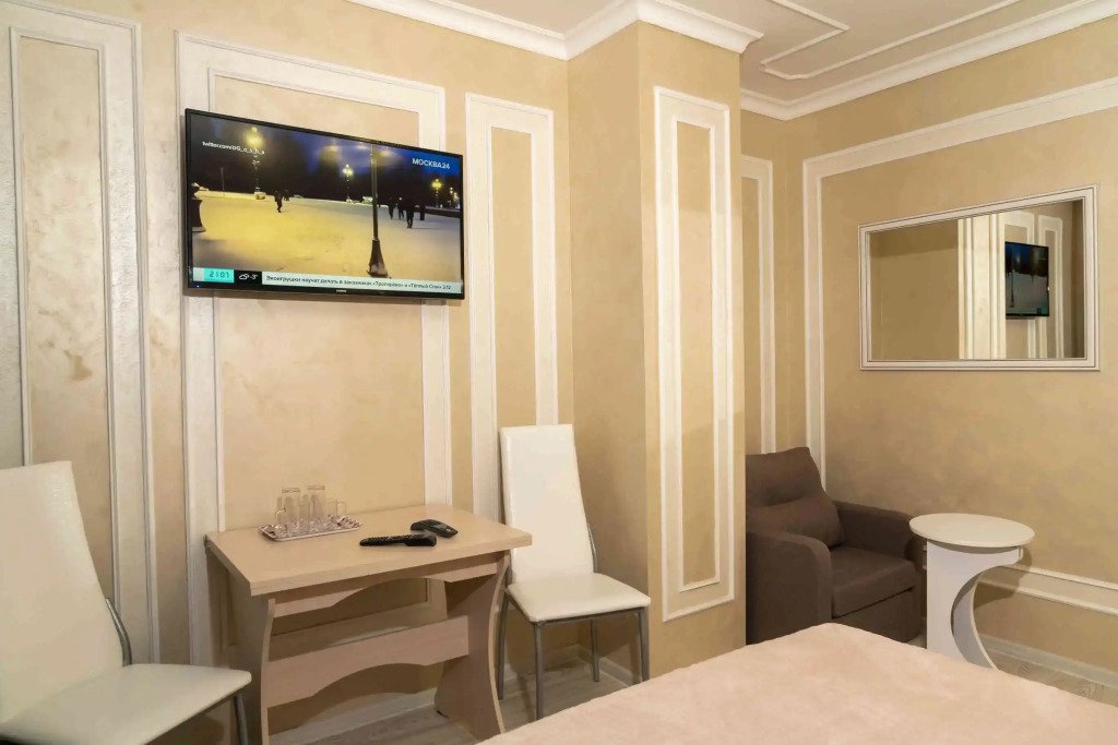 В номере вы найдёте телевизор. Оснащение зависит от выбранной категории номера.