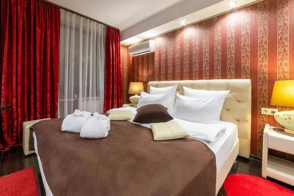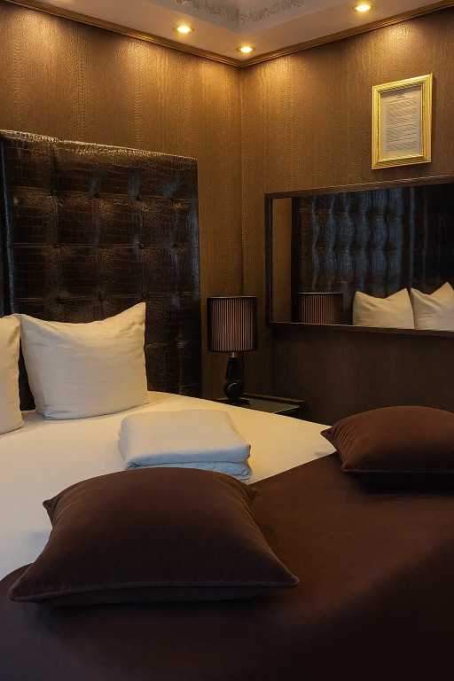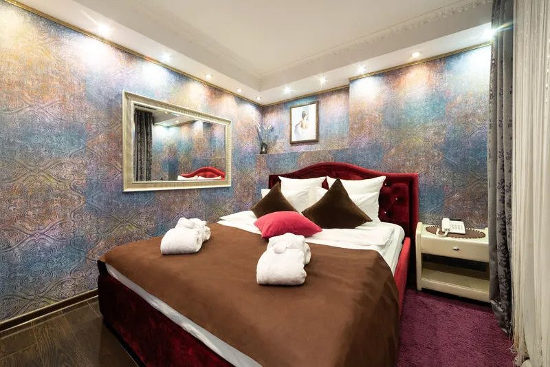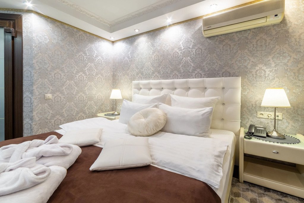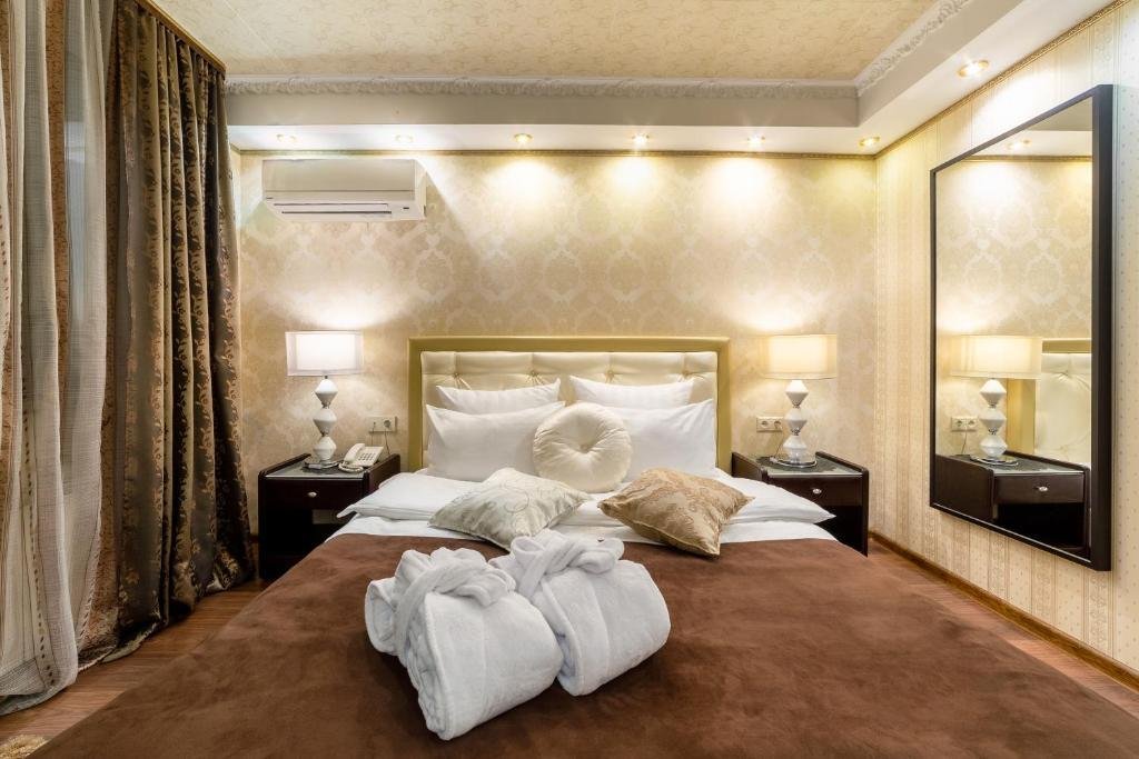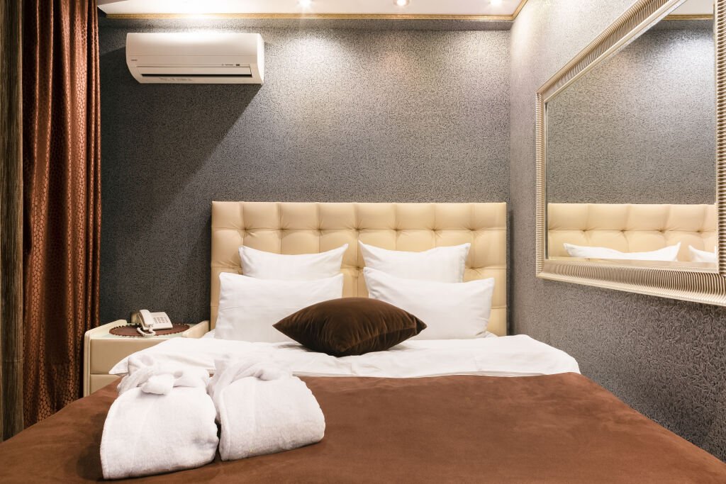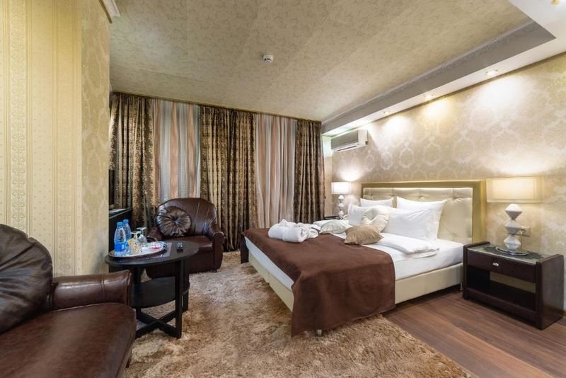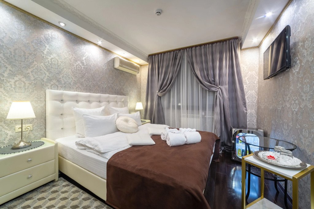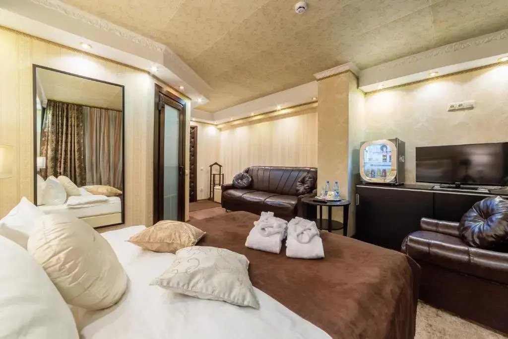 В номере вас будут ждать телевизор и халат. Оснащение зависит от выбранной категории номера.