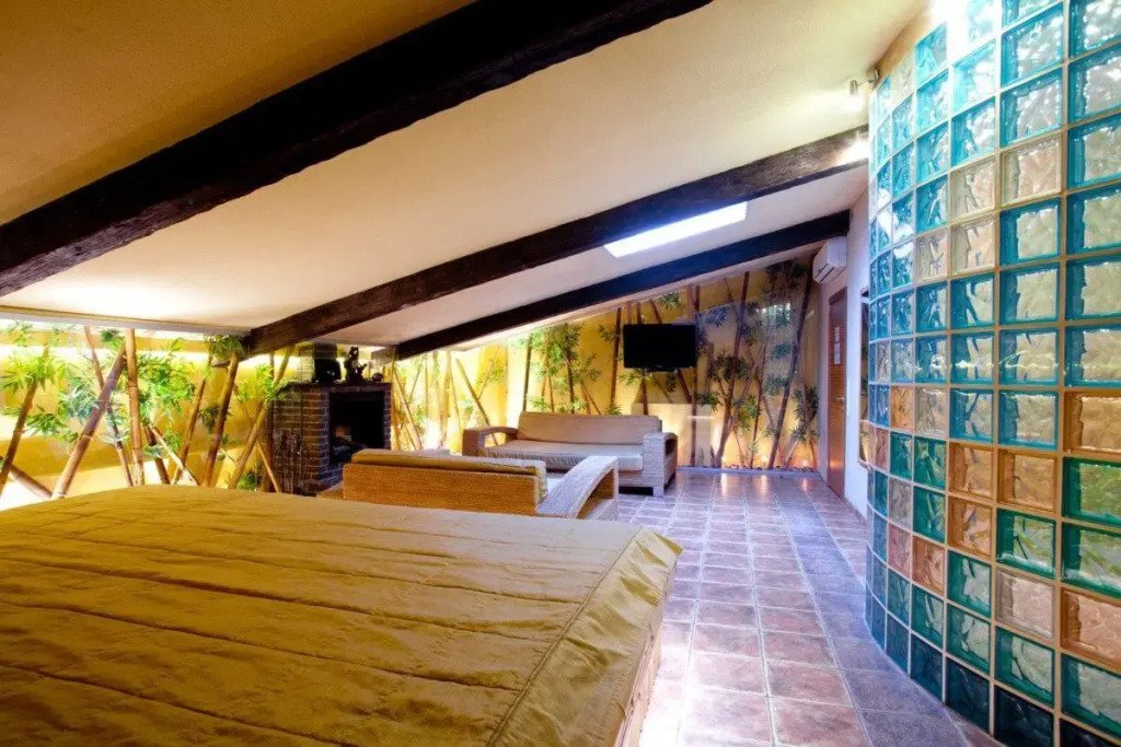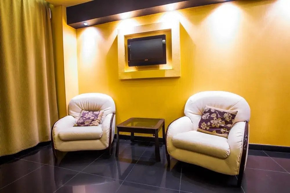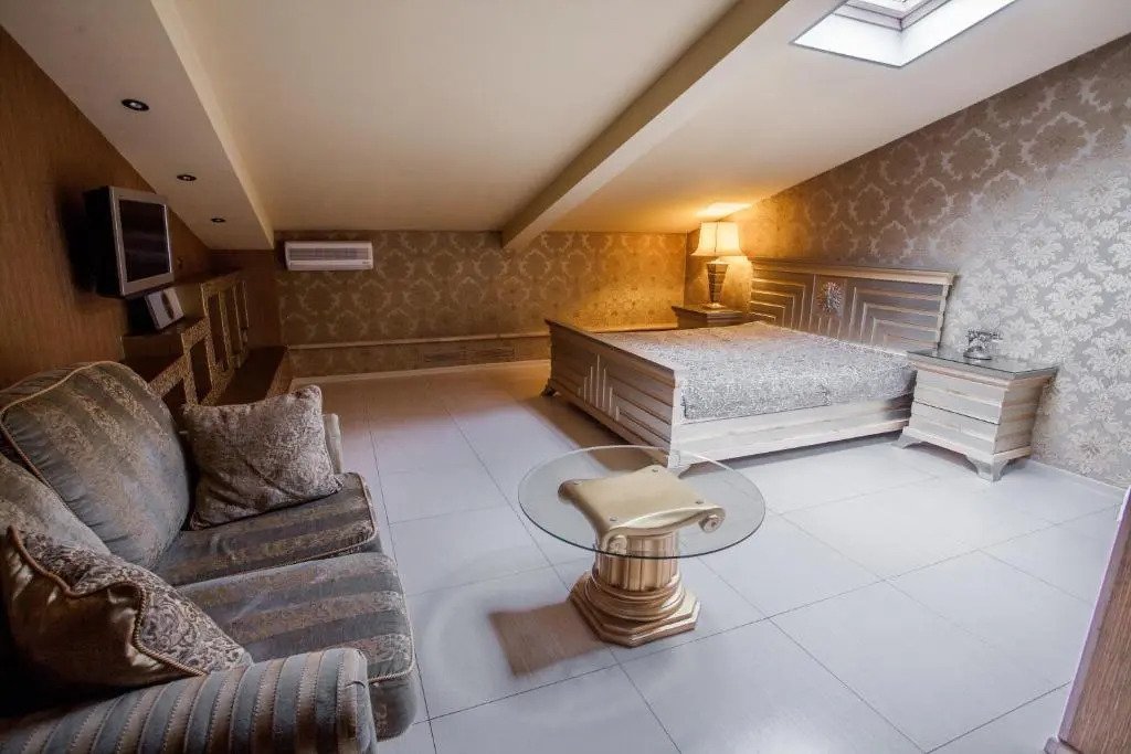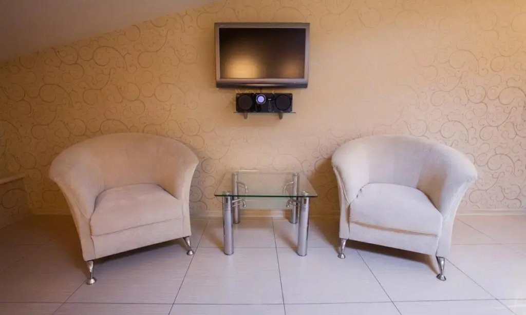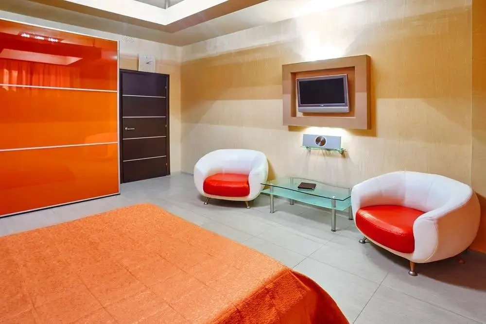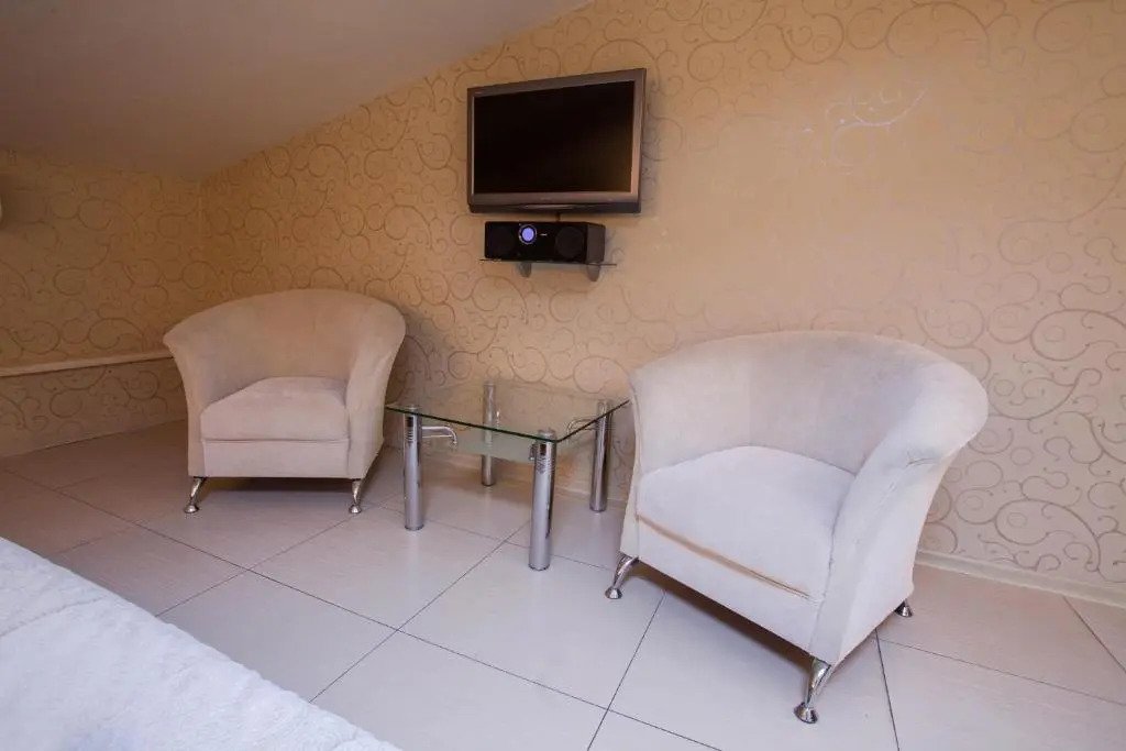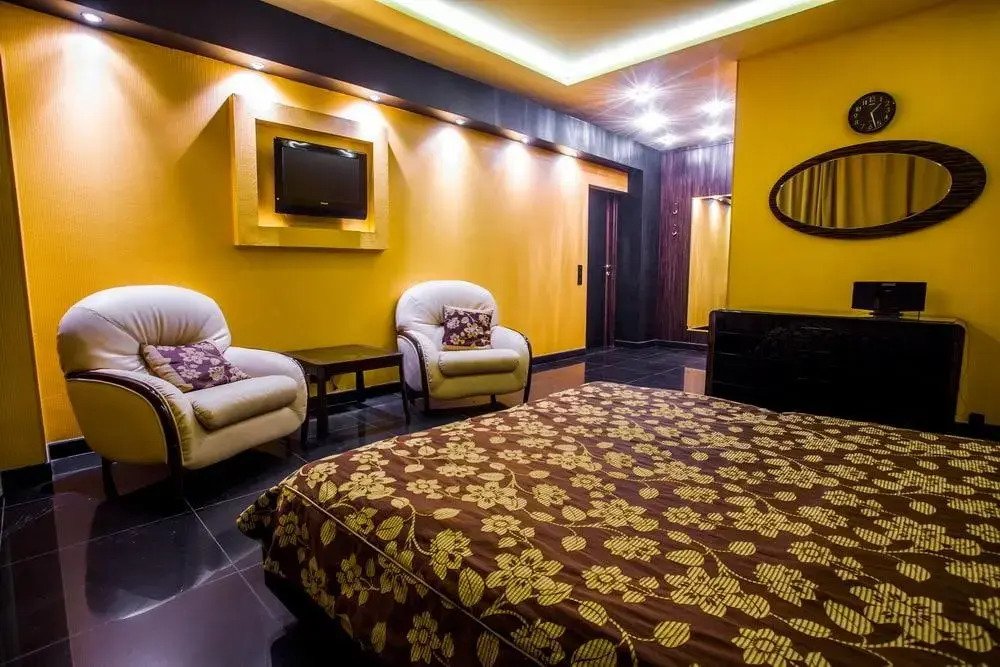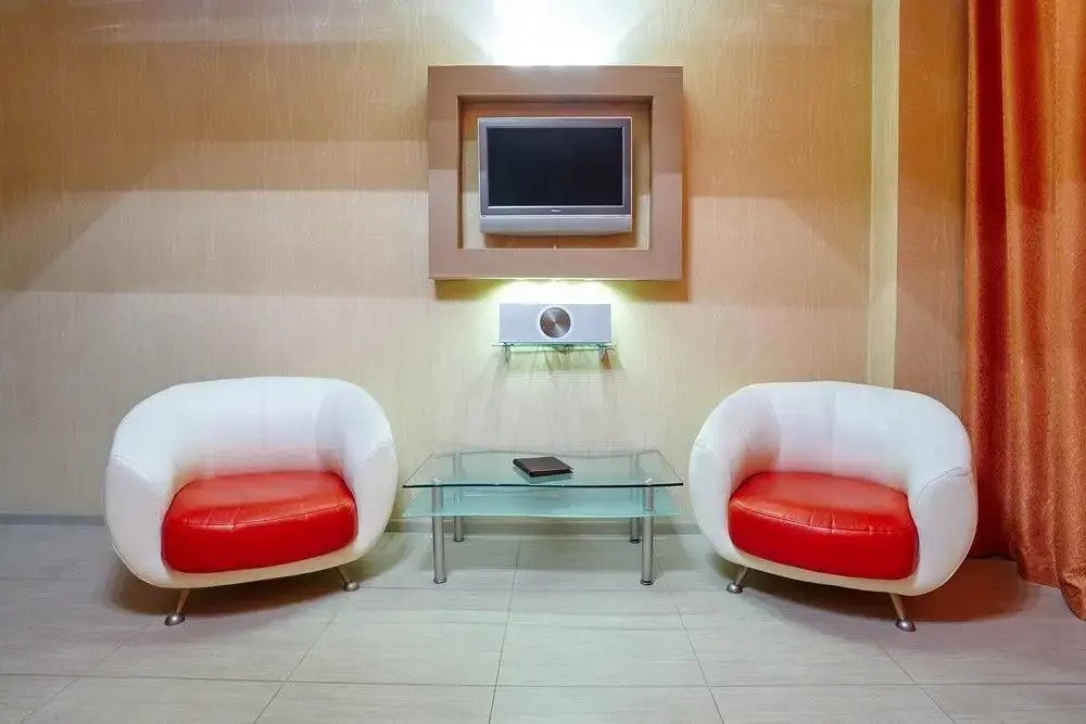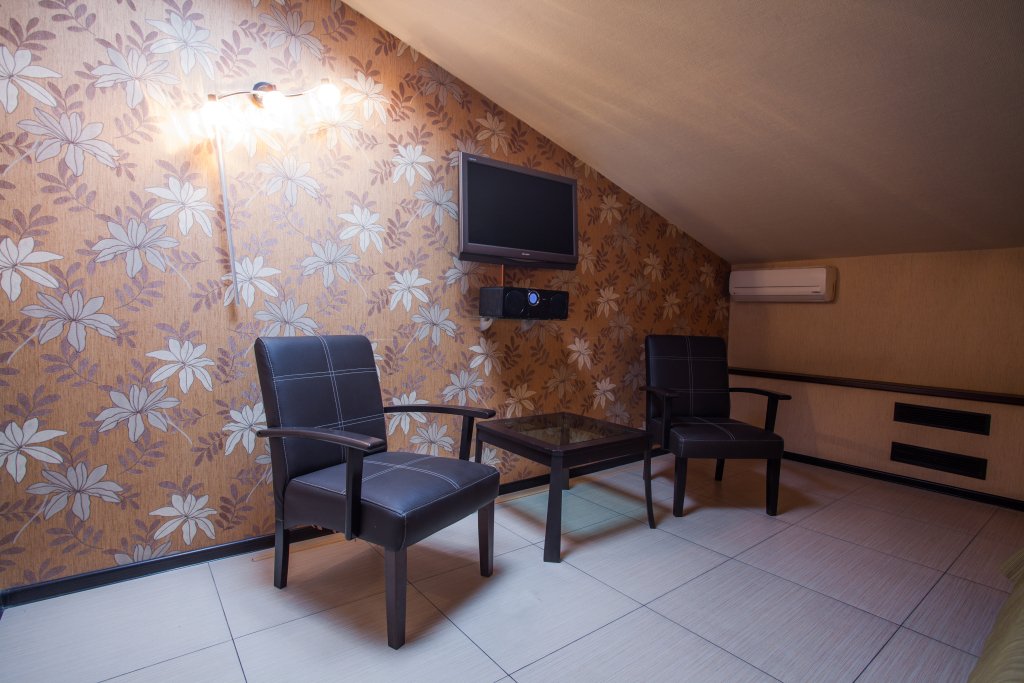 В номере вы найдёте DVD-плеер, телевизор и халат. Оснащение зависит от выбранной категории номера.