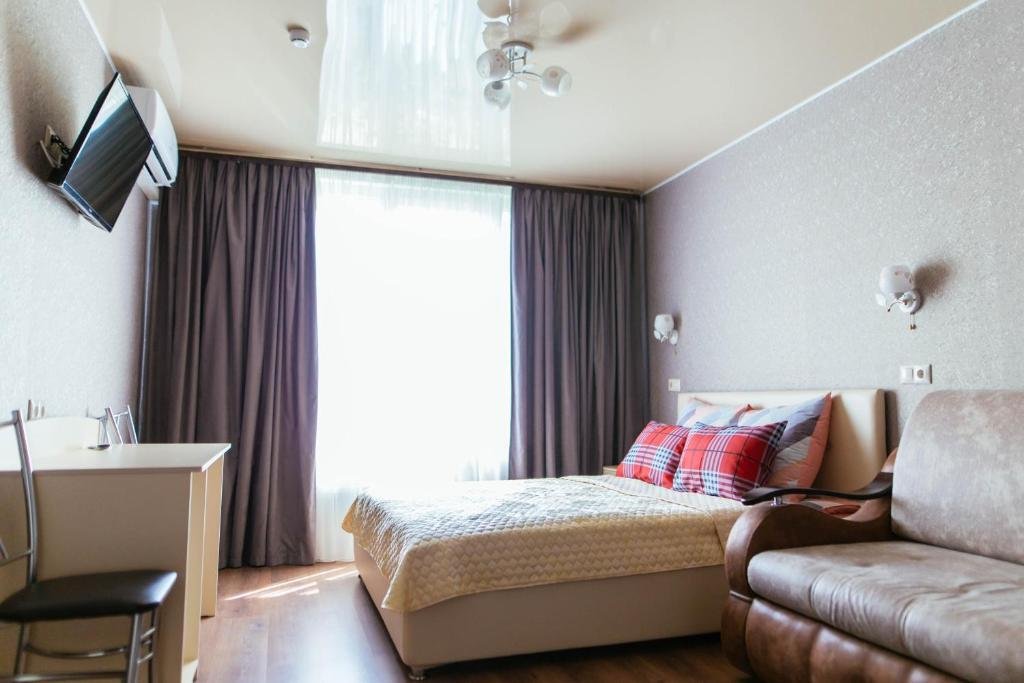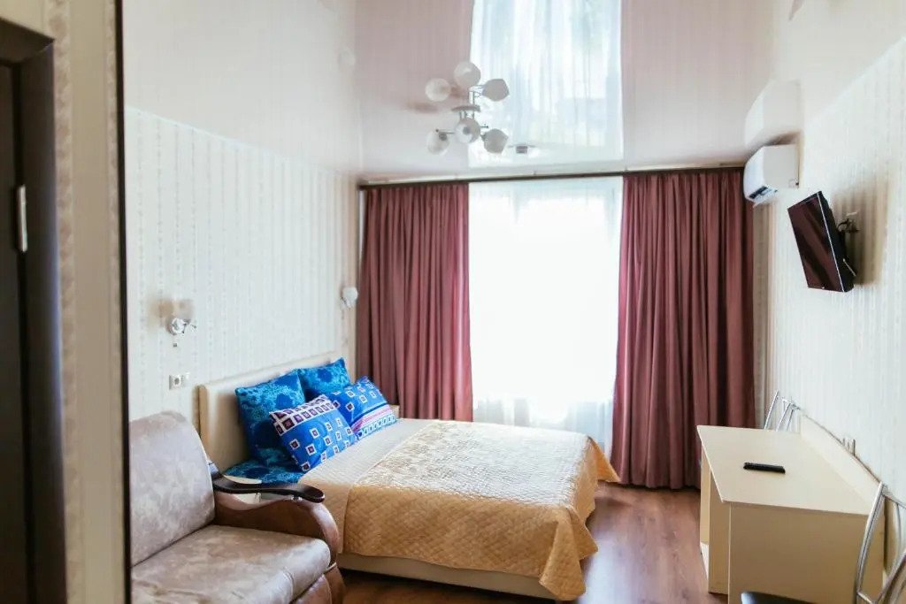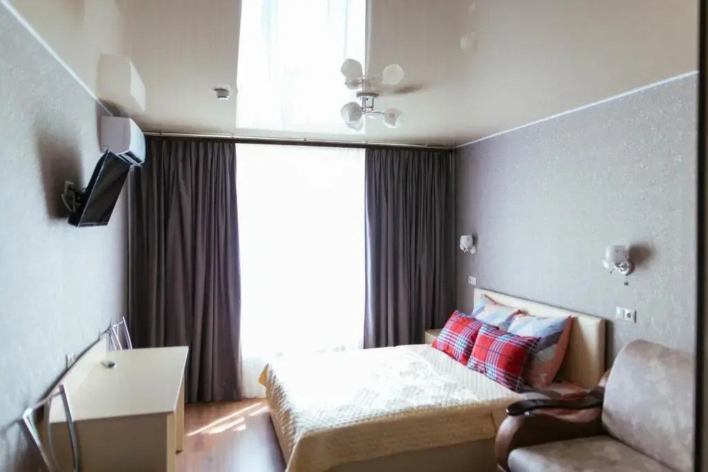 В номере вы найдёте телевизор. Оснащение зависит от выбранной категории номера.