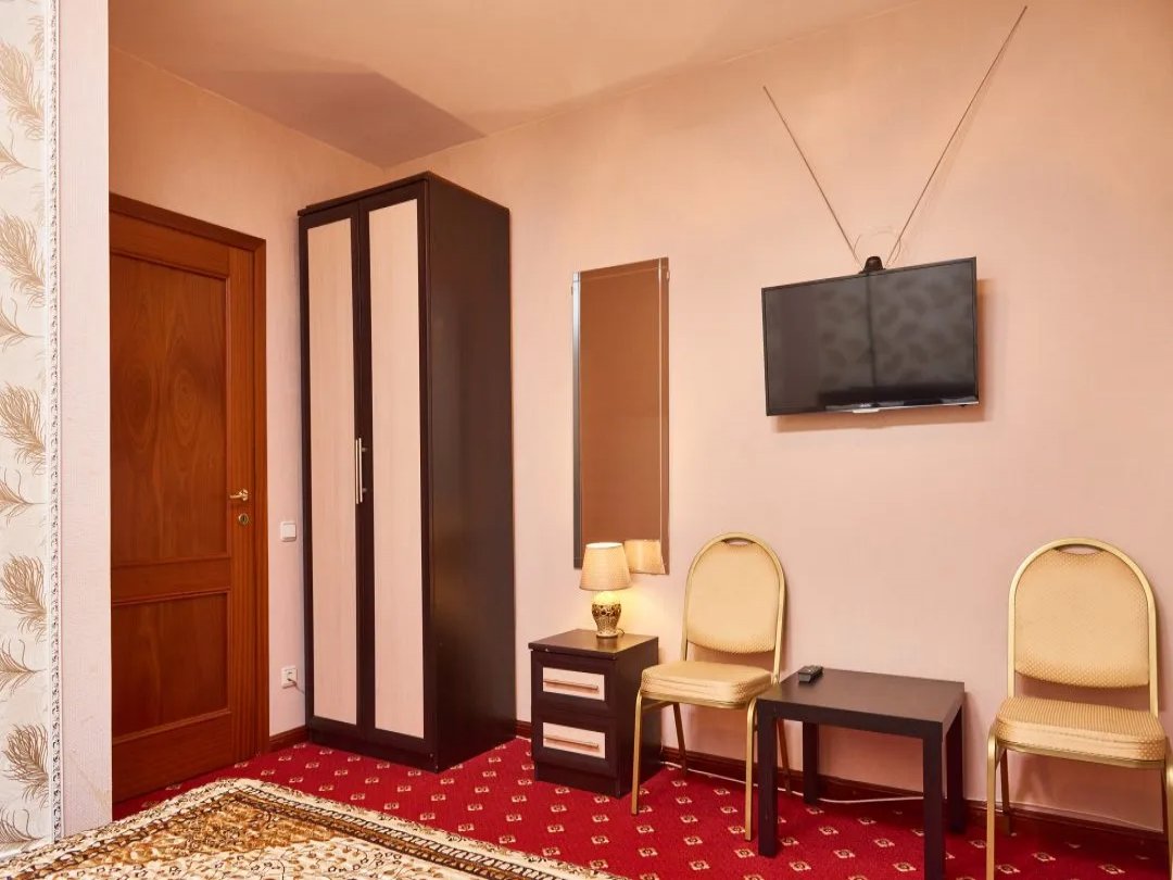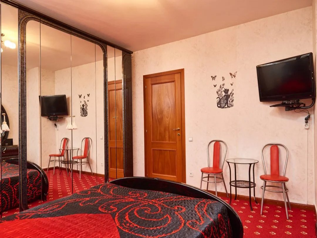 ## Комфорт и уют в каждом детале ### Размещение и оснащение номера **Основные удобства в номере:** * **Комфортное спальное место:** натуральное постельное белье из 100% хлопка, гипоаллергенные и неперьевые подушки * **Освещение и электропитание:** современный светильник, удобные розетки возле кровати * **Мебель и интерьер:** * Просторный шкаф для одежды * Прикроватные тумбочки * Журнальный столик * Удобные стулья * Большое зеркало * **Безопасность и комфорт:** * Надежная система входа по ключу * Москитные сетки на окнах * Огнетушитель * Ковровое покрытие ### Общие помещения и удобства **Санитарные узлы:** * **Душевая зона:** современная душевая кабина, ванна, раковина * **Санитарные принадлежности:** * Туалетные принадлежности (мыло, туалетная бумага) * Фен * Зеркало * Круглосуточная подача горячей воды **Кухонная зона:** * **Техника:** * Холодильник * Микроволновая печь * Электрическая плита * Чайник * **Оснащение:** * Полный набор посуды * Кухонные принадлежности **Дополнительные услуги:** * **Бытовые удобства:** * Стиральная машина * Гладильные принадлежности * **Связь и развлечения:** * Высокоскоростной Wi-Fi * ЖК-телевизор * Кабельное телевидение ### Общие преимущества * **Расположение:** частная квартира в многоквартирном доме * **Инфраструктура:** * Удобный доступ к верхним этажам на лифте * Уютный балкон * Централизованное отопление * Система общего водоснабжения ### Особые условия * **Уборка:** регулярная смена постельного белья и полотенец * **Мусор:** индивидуальные корзины для мусора в каждом номере * **Парковка:** информация по запросу Создайте свой идеальный отдых в атмосфере комфорта и уюта. Мы позаботились о каждой детали, чтобы ваше пребывание было максимально приятным и комфортным.В номере
