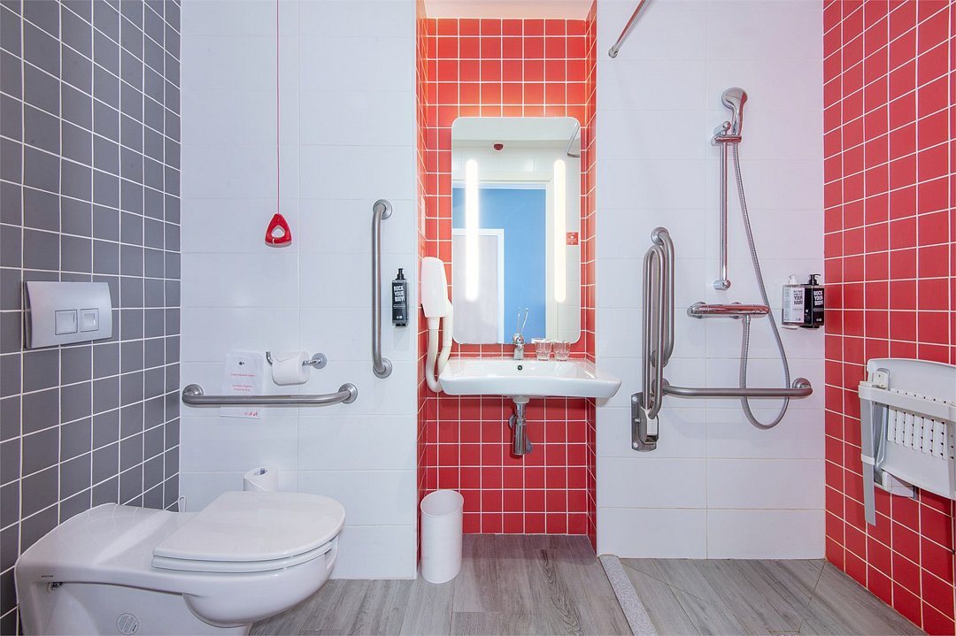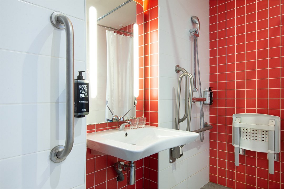 Этот номер Стандарт с продуманным дизайном специально оборудован для гостей с ограниченной мобильностью. Номер 17м² оснащен двуспальной кроватью Sweet Bed от ibis 160х200см и ванной комнатой с душевой зоной. Среди прочих удобств – телевизор 32" с плоским экраном, чайная станция, Wi-Fi, фен, мини-бар.Услуги и удобства