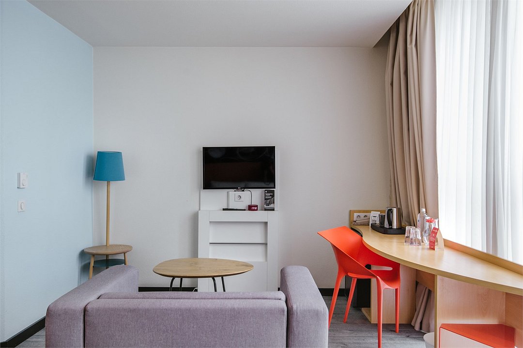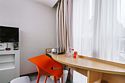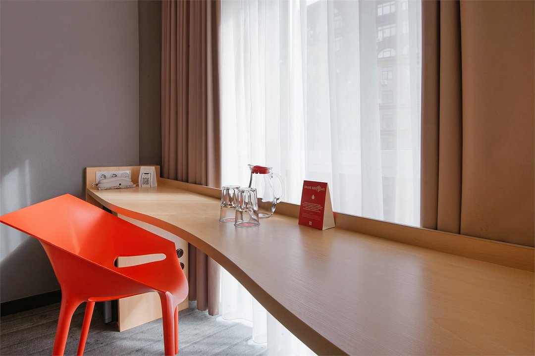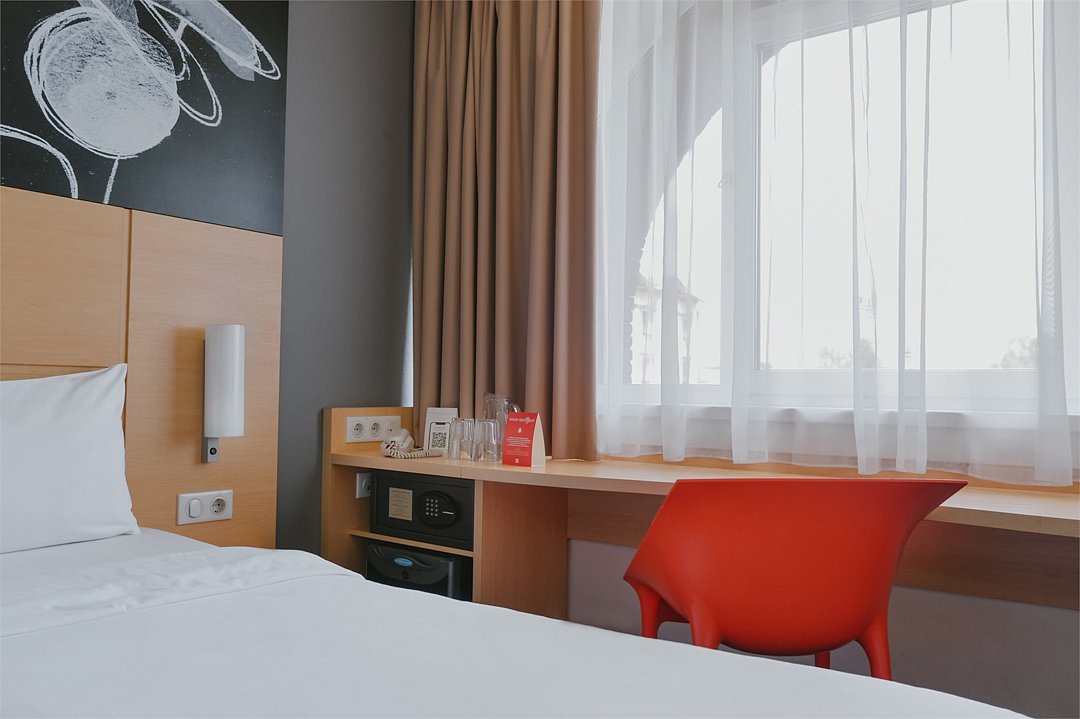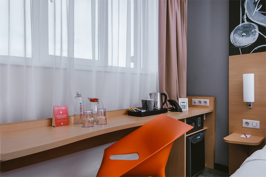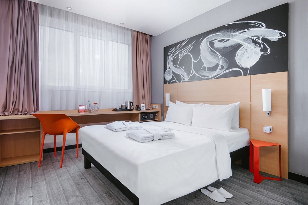 Этот просторный номер Премиум увеличенной площади подарит вам возможность отдохнуть с дополнительным комфортом. Номер 21м² оснащен двуспальной кроватью Sweet Bed от ibis 160х200см, односпальным раскладным креслом и ванной комнатой с душевой кабиной. Среди прочих удобств – телевизор 32" с плоским экраном, чайная станция, Wi-Fi, мини-бар, умная колонка. Косметические принадлежности включены в стоимость номера.Услуги и удобства