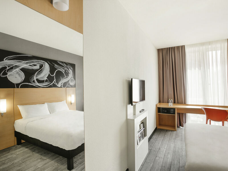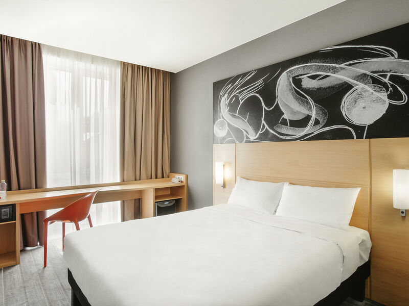 Насладитесь отдыхом в тишине и комфорте нашего номера Стандарт с инновационной кроватью Sweet Bed от ibis. Номер 17м² оснащен двуспальной кроватью 160х200см и ванной комнатой с душевой кабиной. Среди прочих удобств – телевизор 32" с плоским экраном, сейф, Wi-Fi, фен, мини-бар.Услуги и удобства