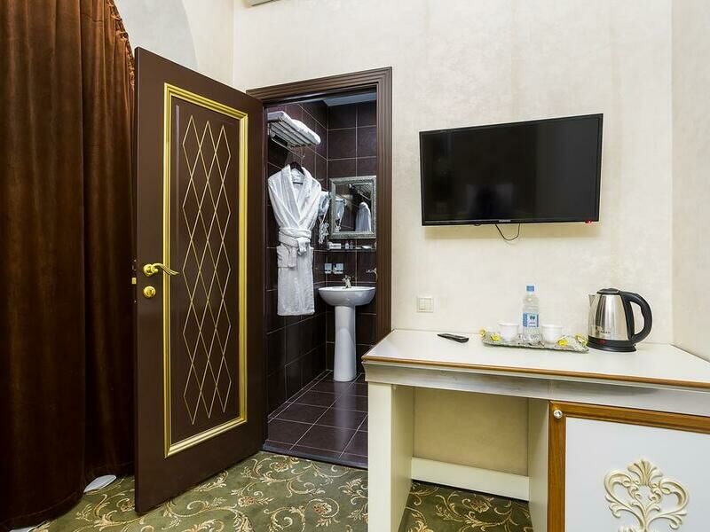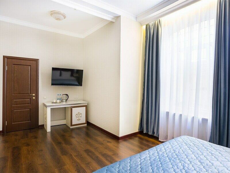 Здесь вам предложат комфортабельные номера различных категорий, от стандартных до роскошных Люксов с джакузи. Все номера оснащен кондиционерами, санузлами и современной бытовой техникой. В отеле есть ресторан, где вы можете насладиться вкусным завтраком. Также на территории отеля доступны бесплатный Wi-Fi, услуги побудки, чистки обуви и заказа такси. Круглосуточная работа Службы приема и размещения, а также Службы безопасности обеспечат ваше спокойствие и комфорт.
