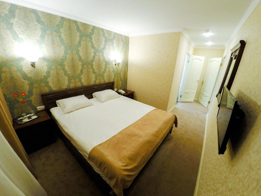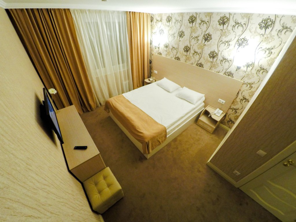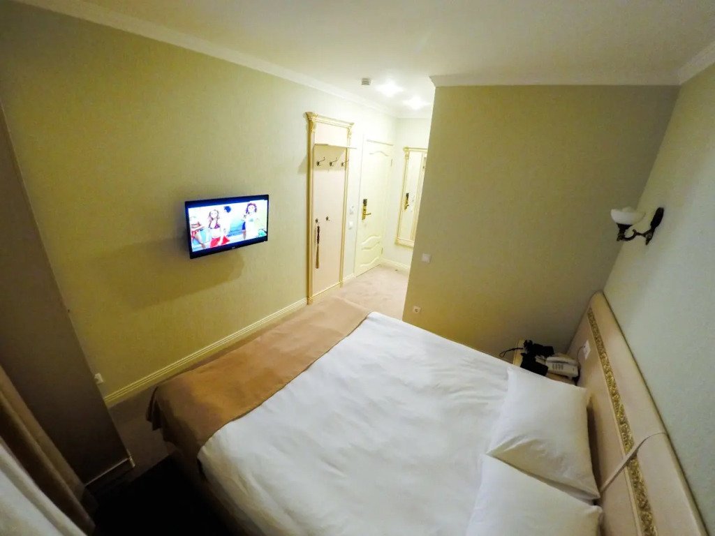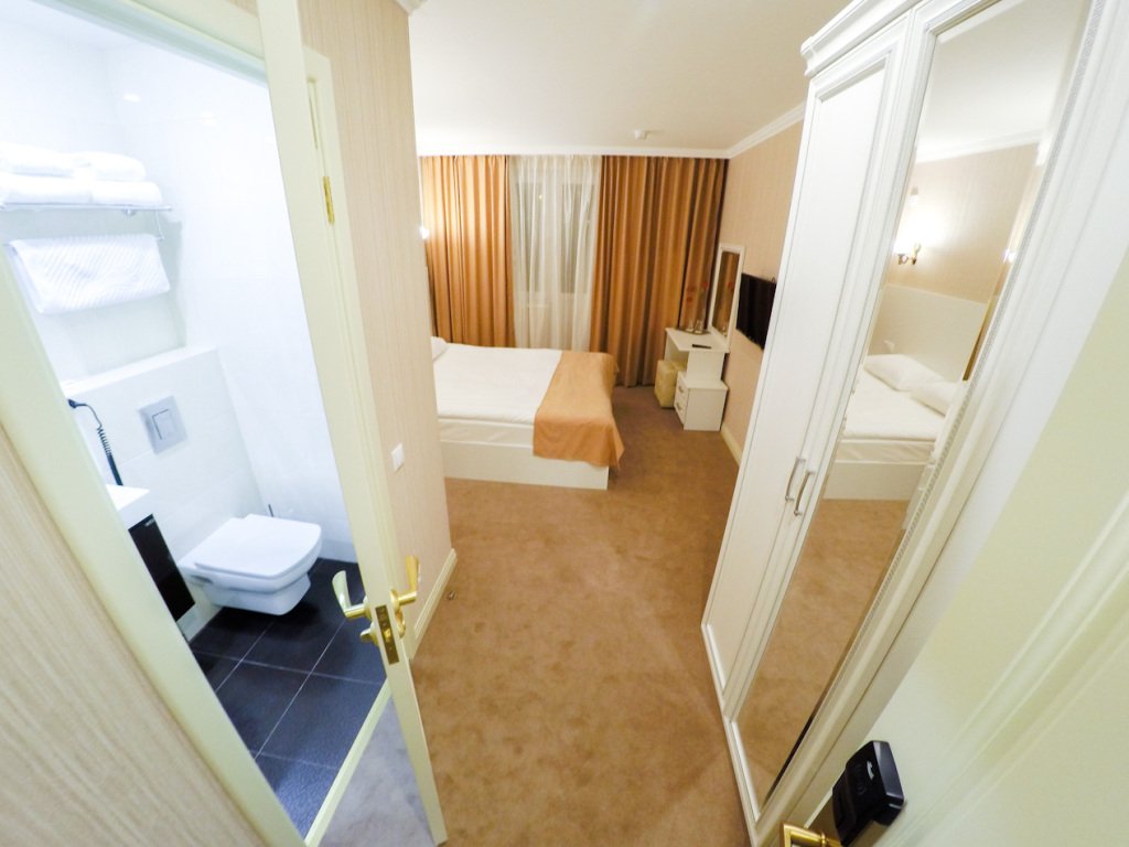 Номер уютно обставлен и оснащён необходимым, чтобы отдохнуть после долгого и насыщенного дня. Имеются телевизор, халат и тапочки. Перечисленные услуги есть не во всех номерах.