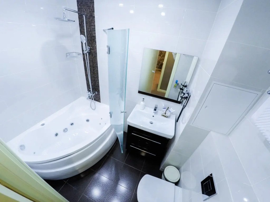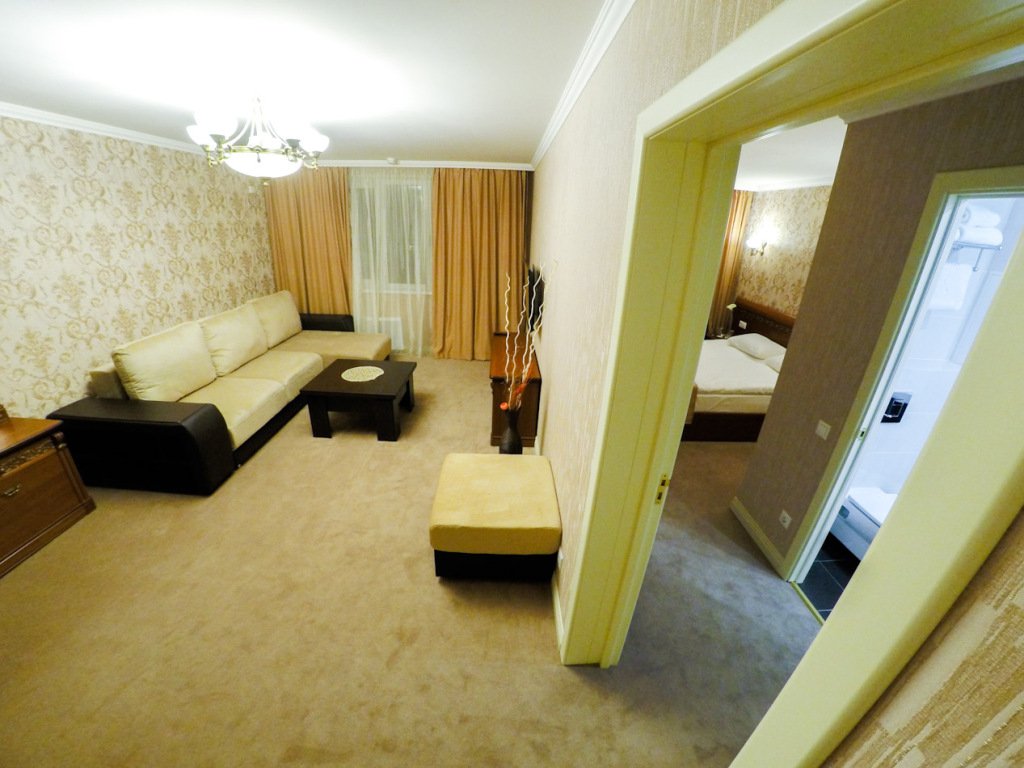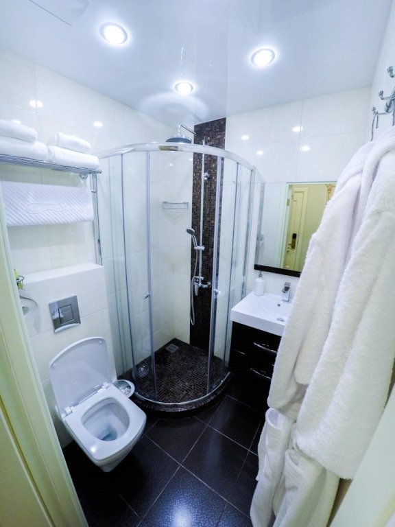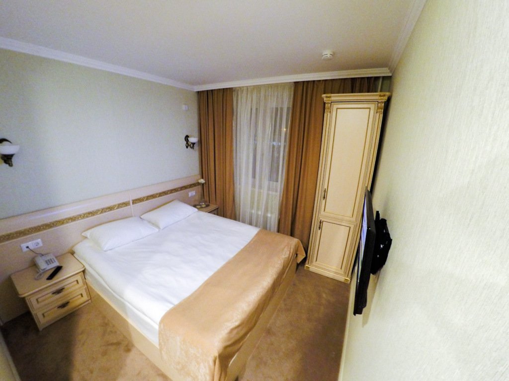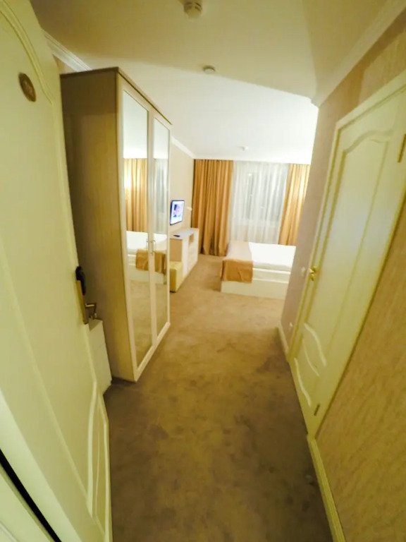 Номер уютно обставлен и оснащён необходимым, чтобы отдохнуть после долгого и насыщенного дня. Имеются телевизор, халат и тапочки. Перечисленные услуги есть не во всех номерах.