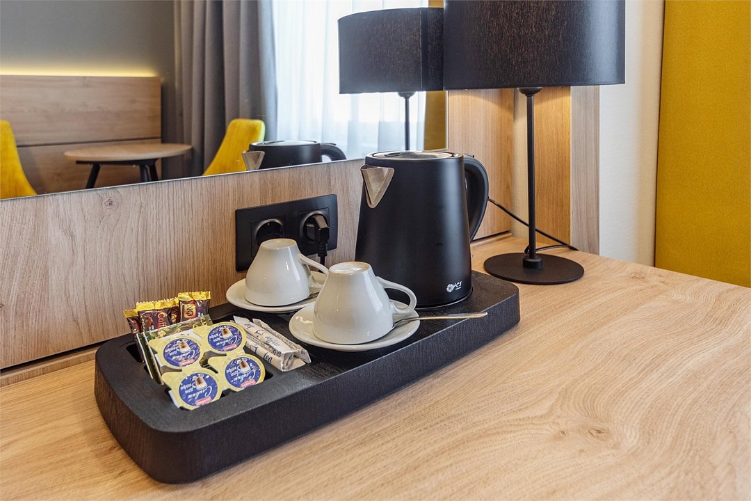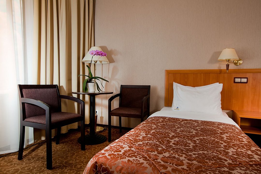 Стандартный номер – номер с двумя раздельными кроватями. Просторная комната с двумя креслами и журнальным столиком, телефоном, телевизором и холодильником. Удобная ванная комната со всеми необходимыми косметическими принадлежностями. Общая площадь номера составляет 22,00 кв. м. Бесплатный Wi-Fi доступ. Кулер с питьевой водой на этажеУслуги и удобства