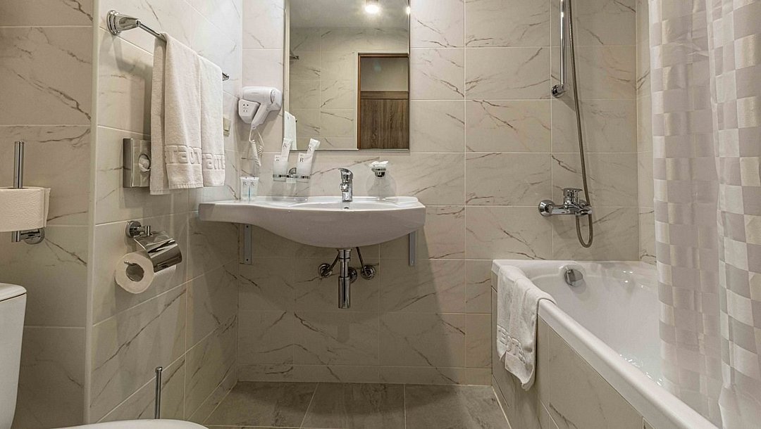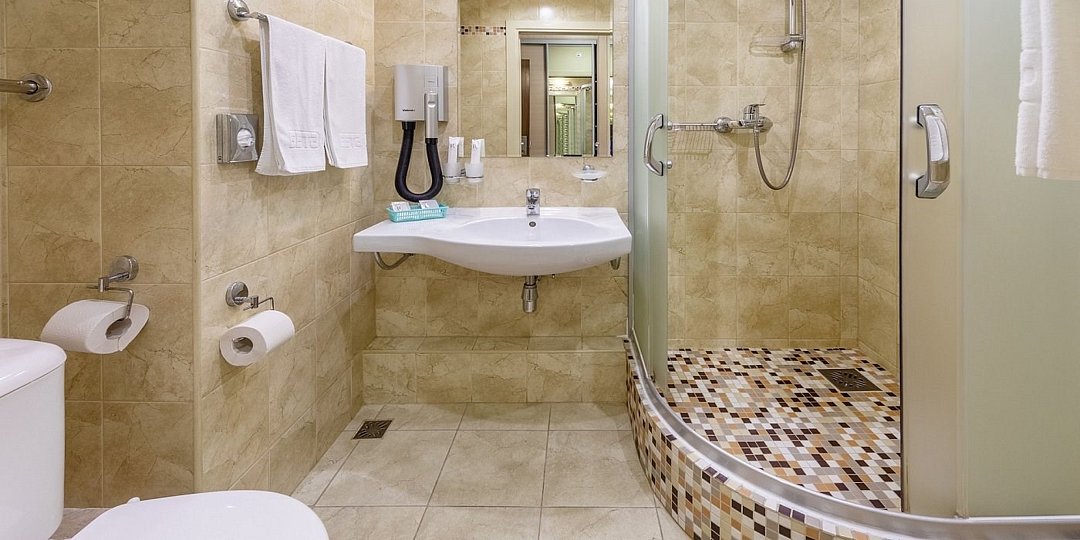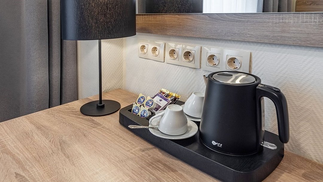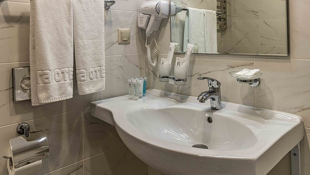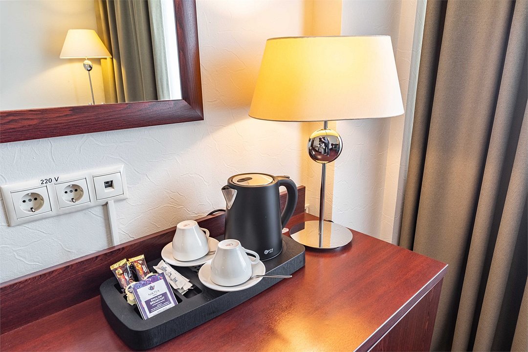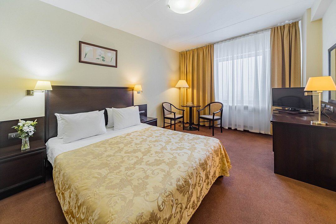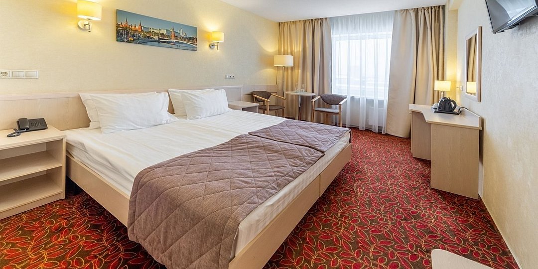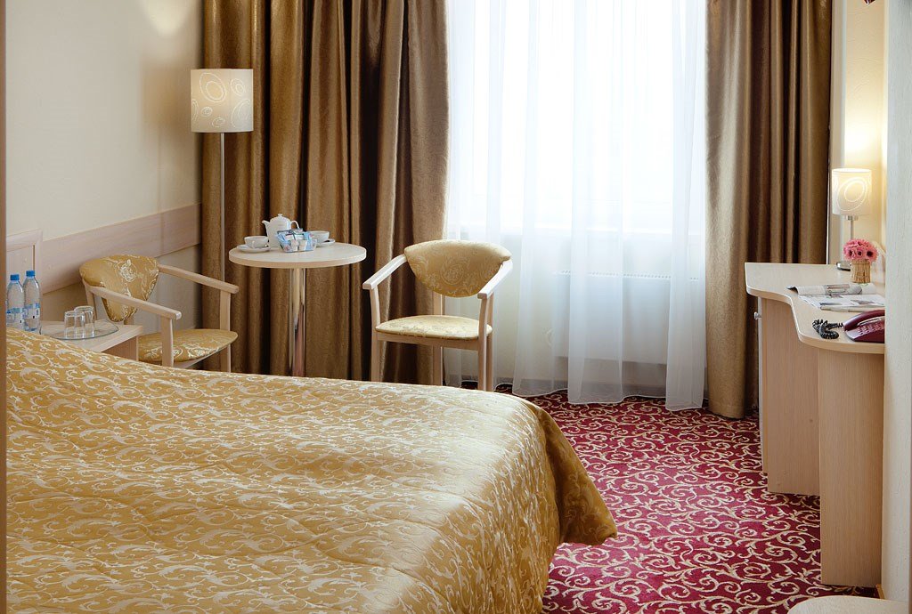 Стандарт плюс - просторный и уютный номер с двумя раздельными кроватями. В номере имеется рабочий стол, телефон, телевизор, сейф, холодильник, чайная станция, просторная ванная комната со всеми необходимыми косметическими принадлежностями. Wi-Fi доступ. Питьевая бутилированная вода в номере при заезде. Общая площадь номера составляет 22 кв. м. Период работы кондиционеров: с мая по сентябрь.Услуги и удобства