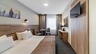 Стандарт плюс - просторный и уютный номер с одной большой кроватью. В номере имеется стол, телефон, телевизор, сейф, холодильник, чайная станция, просторная ванная комната со всеми необходимыми косметическими принадлежностями. Бесплатный Wi-Fi доступ Питьевая бутилированная вода в номере при заезде. Общая площадь номера составляет 22 кв. м. Период работы кондиционеров: с мая по сентябрь.Услуги и удобства