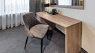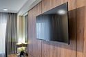 телевизор, Wi-Fi, телефон, кондиционер, светильник, фен, система безопасности, электронные замки, ванная комната, ванна или душевая кабина, банные полотенца, тапочки, косметические средства, двуспальная кровать, шкаф для одежды, багажная тумба, зеркало, кулер на этаже, кресло, стул, туалетные средства, мини-холодильникВ гостиничном номере