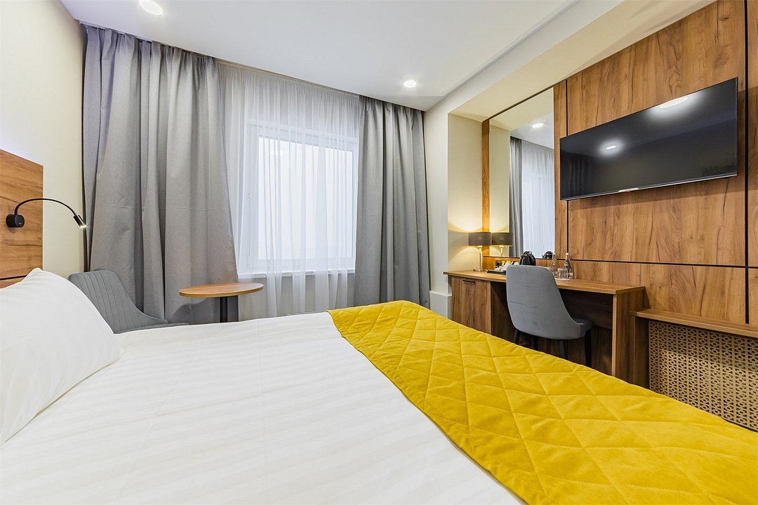 Современные номера «Комфорт» - новая категория номеров в гостинице. Номера оснащены всем необходим для хорошего отдыха. Гостей ждёт 40-дюймовый ЖК-телевизор, удобный рабочий уголок, чайная станция, просторная кровать и уютная душевая комната. Период работы кондиционеров: с мая по сентябрь.Услуги и удобства
