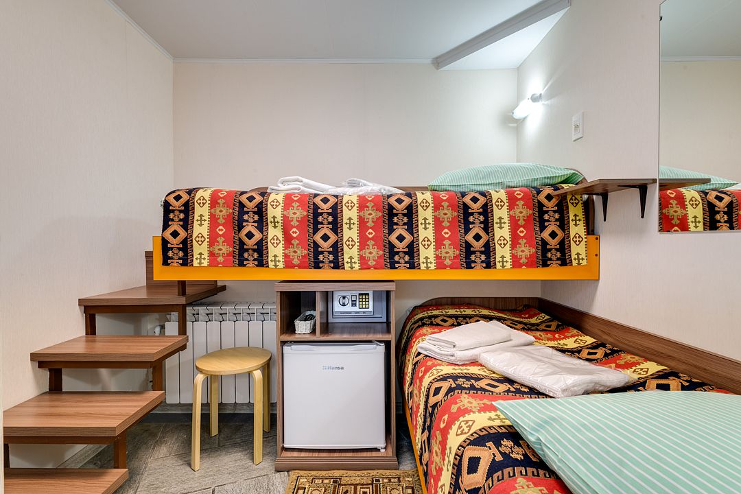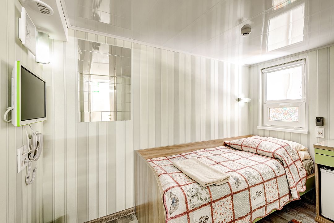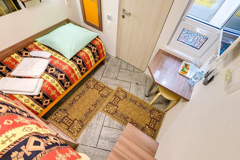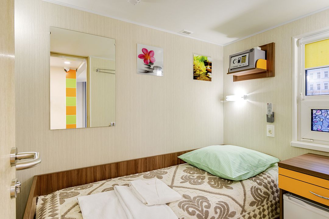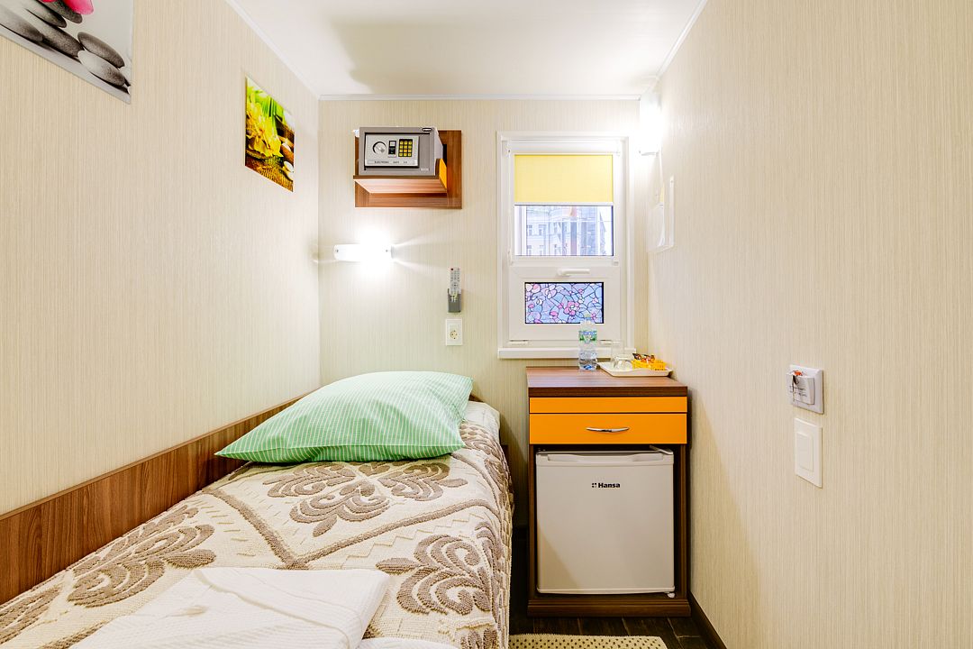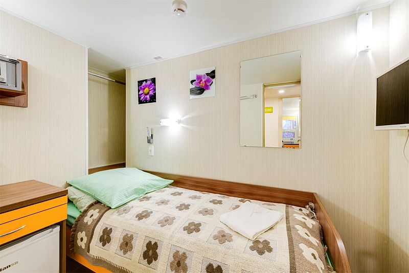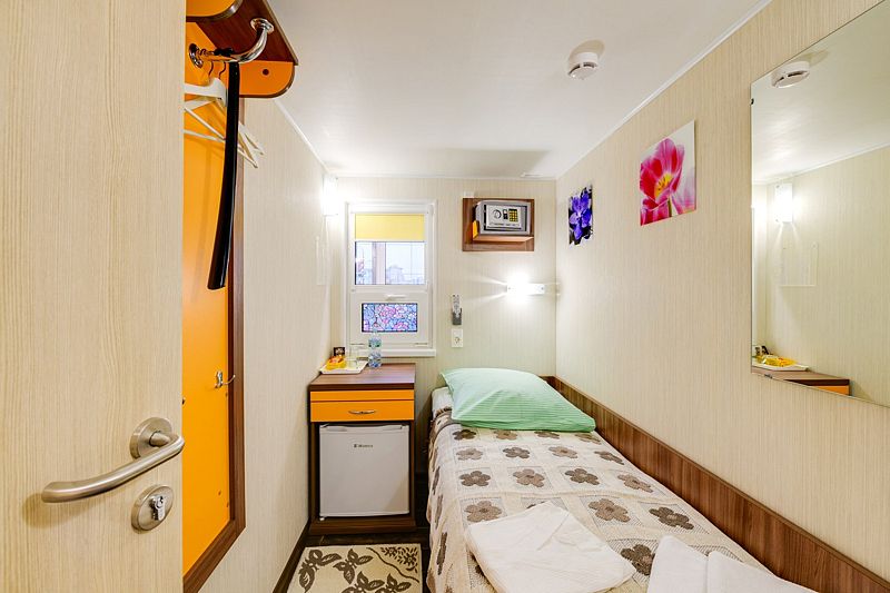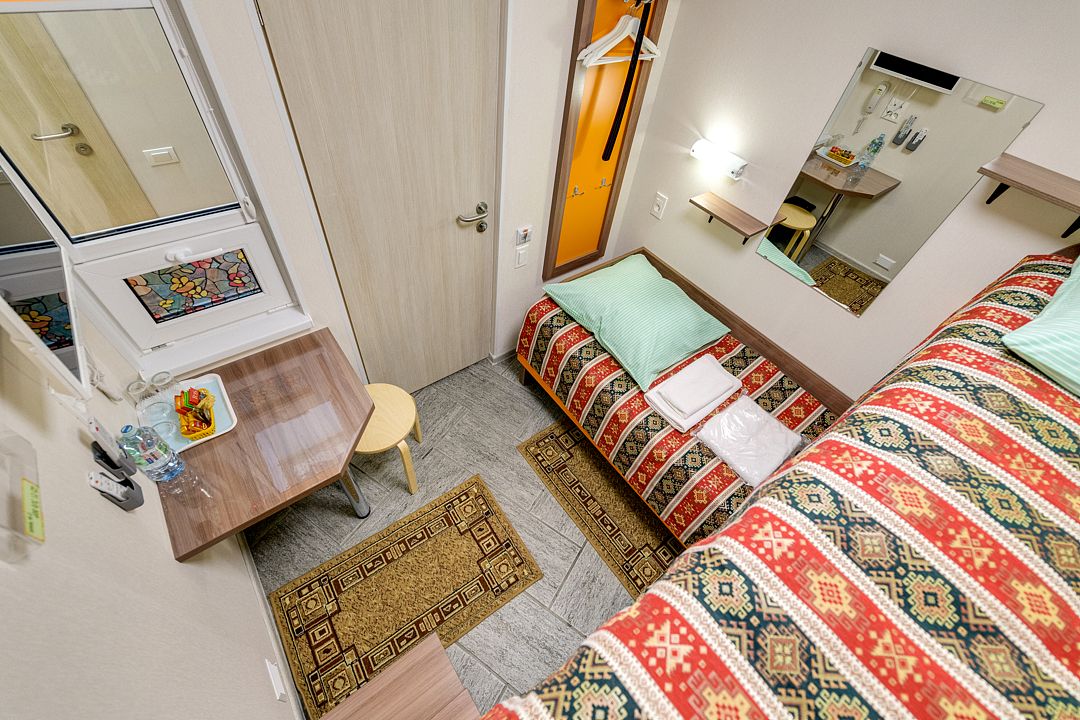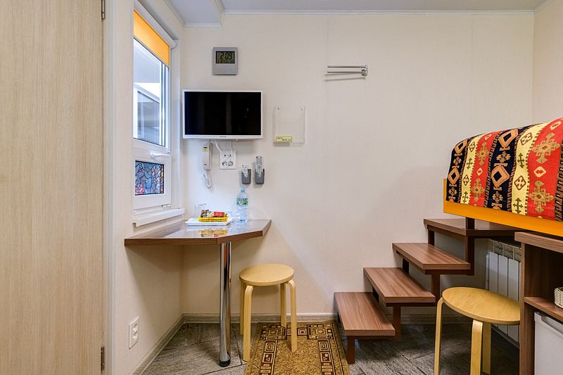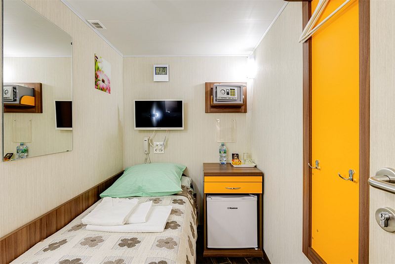 Комфортный однокомнатный номер-капсула для двоих, выполненный в современном дизайне. В этом уютном пространстве есть две кровати размером 80x200 см, телевизор, холодильник, сейф и телефон. Также гостям предоставляется приветственный набор — чай, кофе, печенье и бутилированная вода. Для всех гостей — халаты и тапочки бесплатно, чтобы чувствовать себя дома.