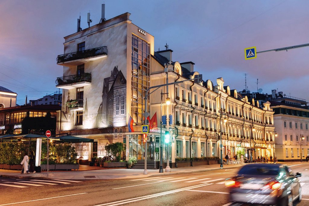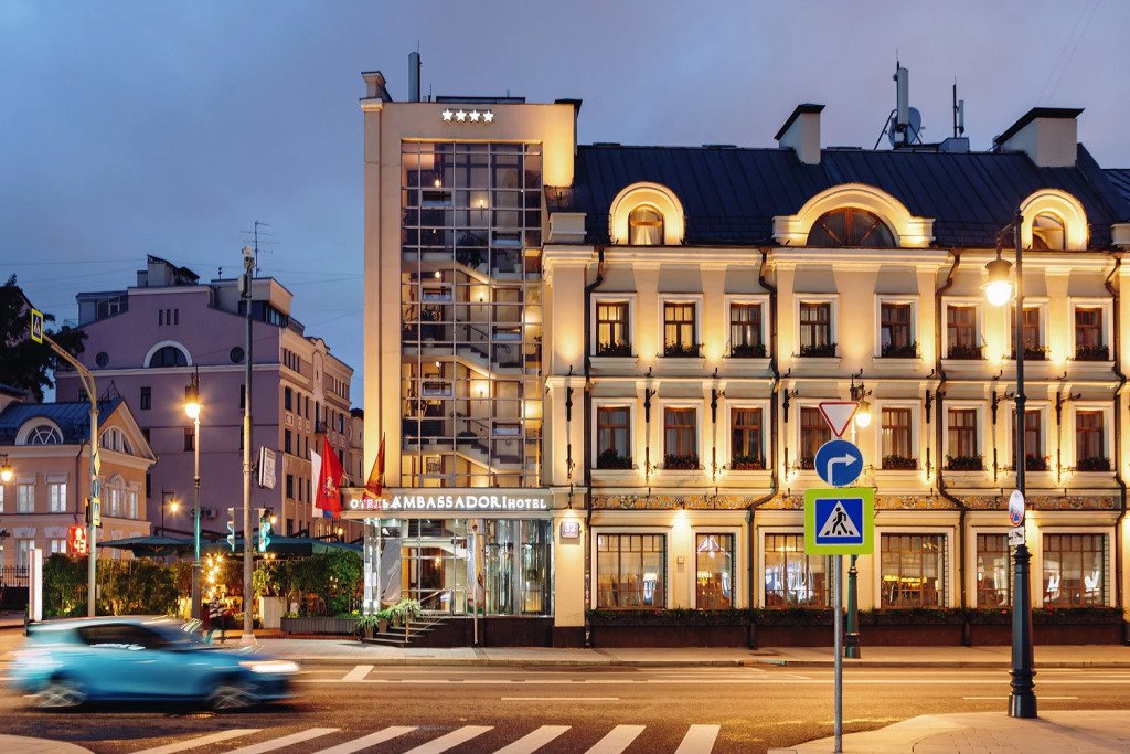 Отель «Амбассадори» — это современный бутик-отель, расположенный в историческом районе Москвы, в пределах Садового кольца и в нескольких километрах от Кремля, Красной площади и Большого театра. Также отель находится в пешей доступности от Храма Христа Спасителя, в престижном районе Хамовники, который славится ресторанами и кафе, галереями искусств, антикварными салонами, модными магазинами.