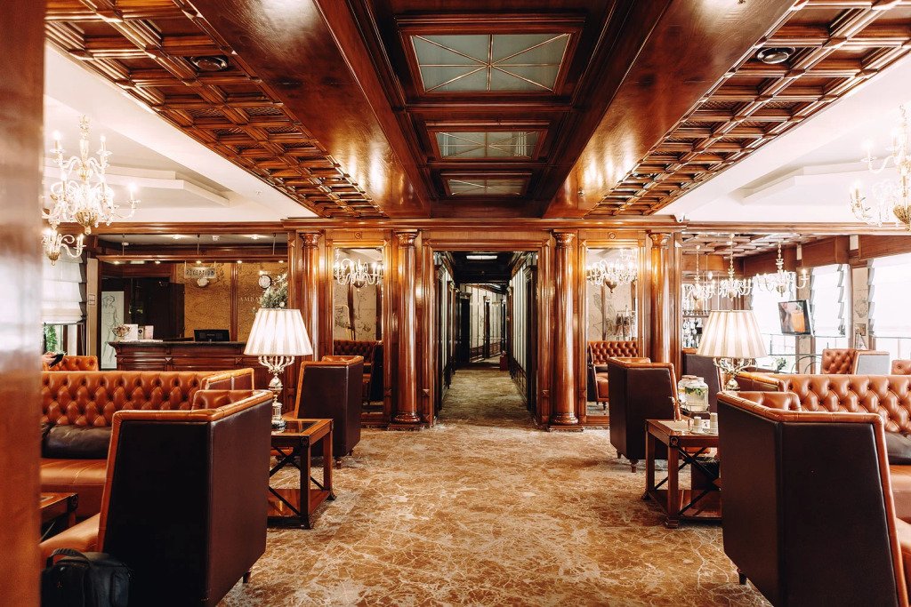 Отель «Амбассадори» — это дизайнерский отель, который предлагает следующие услуги: лобби-бар, круглосуточное обслуживание в номерах, прачечная, сейф на стойке приема и размещения гостей, чистка обуви — на каждом этаже отеля у лифта находится машинка для чистки обуви.