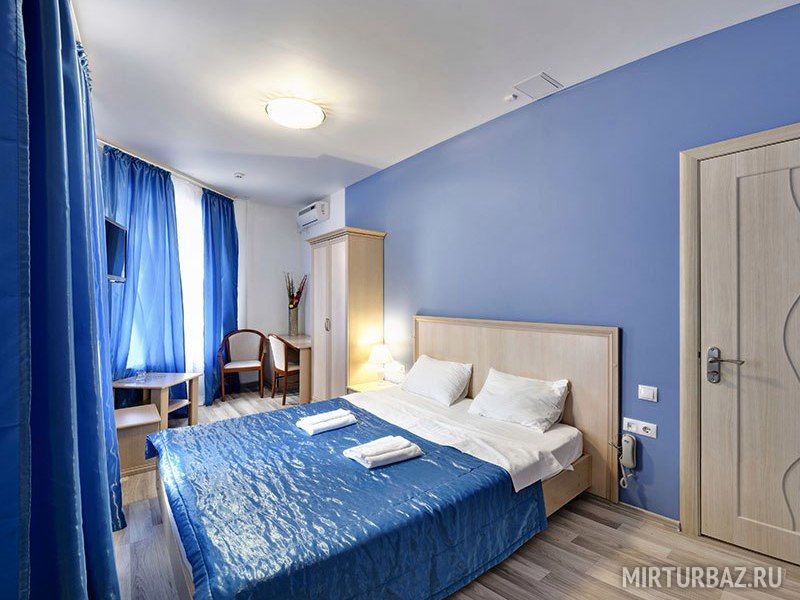 Номер «Бизнес» в отеле на день, ночь, час – оптимальное решение для взыскательного гостя по разумной цене. Категория номеров «Бизнес» имеют все необходимое для отличного отдыха и призваны удовлетворить каждого ценителя повышенного комфорта. Интерьер комнаты оформлен в нежно-голубой цветовой гамме.