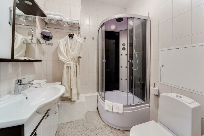 Из пожеланий к усовершенствованию: сделать лестницу для подъёма с чемоданом, добавить тапочки в номер и увеличить размер ванной кабинки) но это мелочи))