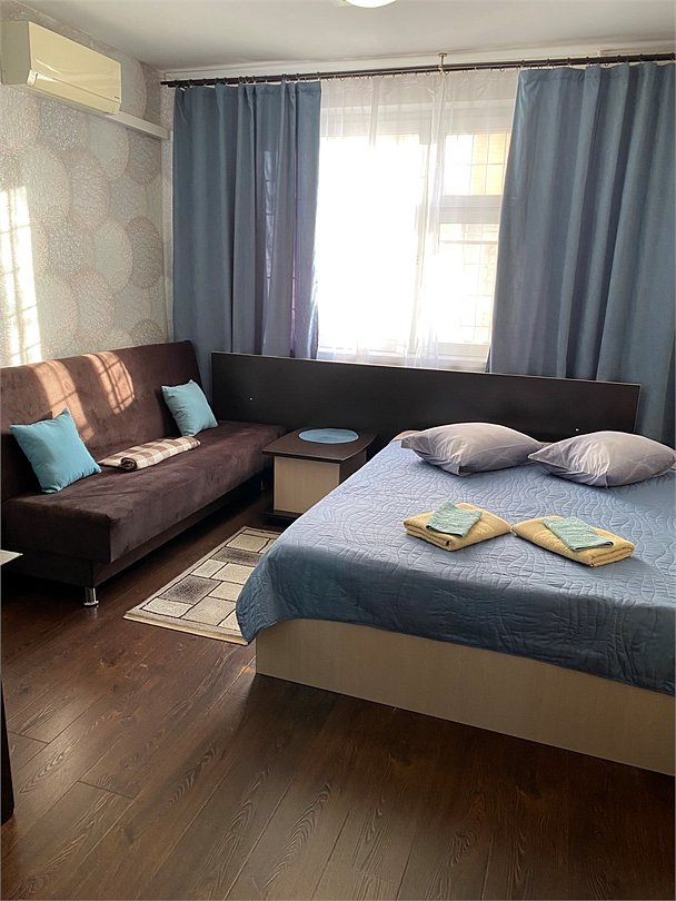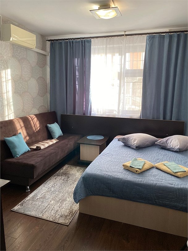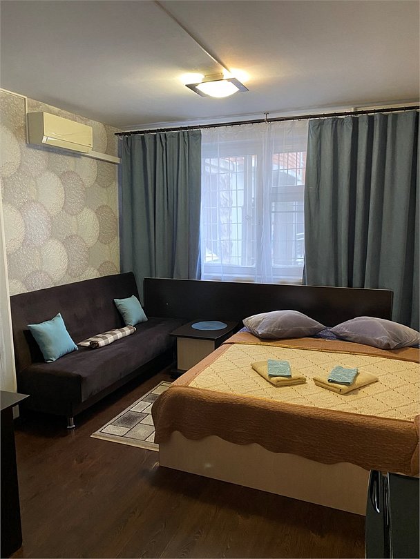 телевизор, Wi-Fi, интернет, кондиционер, санузел, банные принадлежности, банные полотенца, тапочки, гигиенические средства, двуспальная кровать, тумбы, стулья, багажная тумба, зеркало, ковер, чайный набор, набор посуды, обслуживание номеров, унитаз, раковина, отопление, душ, кулер на этаже, вид во двор, ламинат, кухонная посуда, стаканы, столовые приборы, стул, стол, туалетные средства, туалет, диван-кровать, раскладной диван, телевизор с плоским экраном, мини-холодильник, москитная сетка, гостиничная парфюмерия, номер для некурящих, рабочий стол, без питомцевВ гостиничном номере