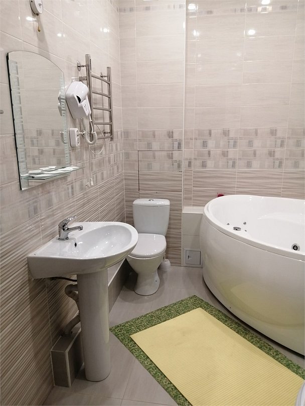телевизор, Wi-Fi, интернет, кондиционер, светильник, душевая кабина, гидромассажная ванна, санузел, банные принадлежности, банные полотенца, тапочки, гигиенические средства, косметические средства, двуспальная кровать, кресла, стулья, шкаф для одежды, вешалки, багажная тумба, зеркало, ковер, чайный набор, набор посуды, обслуживание номеров, унитаз, раковина, отопление, кулер на этаже, вид во двор, ламинат, высокие потолки, кухонная посуда, стул, тумба, туалетные средства, туалет, телевизор с плоским экраном, мини-холодильник, москитная сетка, номер для некурящих, рабочий стол, джакузи, без питомцевВ гостиничном номере