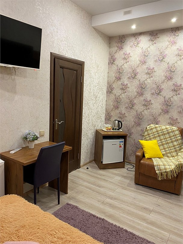 телевизор, Wi-Fi, телефон, кондиционер, светильник, ванная комната, ванна, санузел, банные принадлежности, банные полотенца, тапочки, косметические средства, двуспальная кровать, тумбы, стулья, шкаф для одежды, вешалки, письменный стол, багажная тумба, зеркало, ковер, чайный набор, набор посуды, обслуживание номеров, чайник, унитаз, раковина, отопление, душ, кулер на этаже, вид во двор, ламинат, высокие потолки, кухонная посуда, стаканы, столовые приборы, стул, тумба, туалетные средства, туалет, диван-кровать, раскладной диван, телевизор с плоским экраном, мини-холодильник, москитная сетка, номер для некурящих, без питомцевВ гостиничном номере