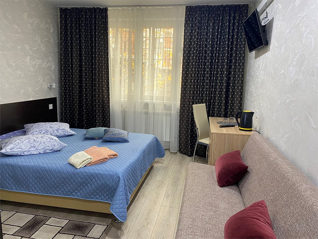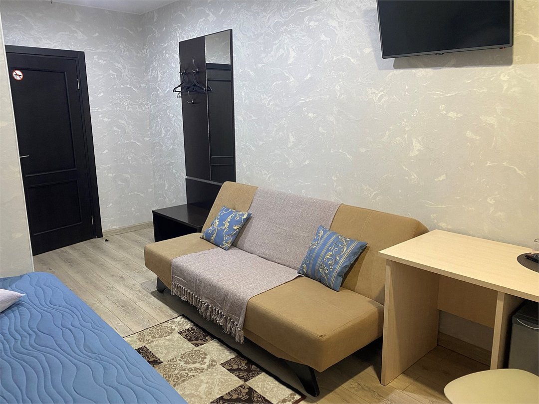 телевизор, Wi-Fi, интернет, кондиционер, ванная комната, ванна, санузел, банные полотенца, тапочки, гигиенические средства, двуспальная кровать, тумбы, стулья, шкаф для одежды, вешалки, журнальный столик, багажная тумба, зеркало, ковер, набор посуды, обслуживание номеров, унитаз, раковина, отопление, кулер на этаже, вид во двор, ламинат, стаканы, столовые приборы, стул, тумба, туалетные средства, туалет, диван-кровать, телевизор с плоским экраном, мини-холодильник, москитная сетка, гостиничная парфюмерия, номер для некурящих, рабочий стол, без питомцевВ гостиничном номере