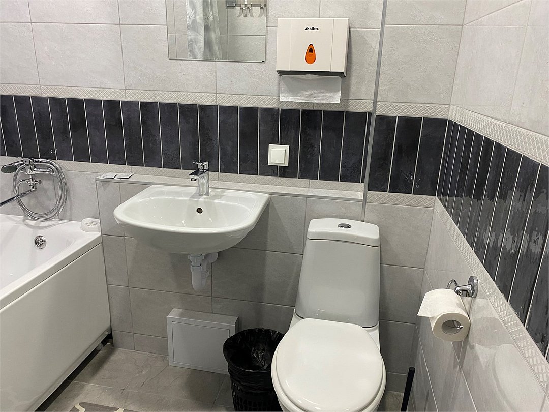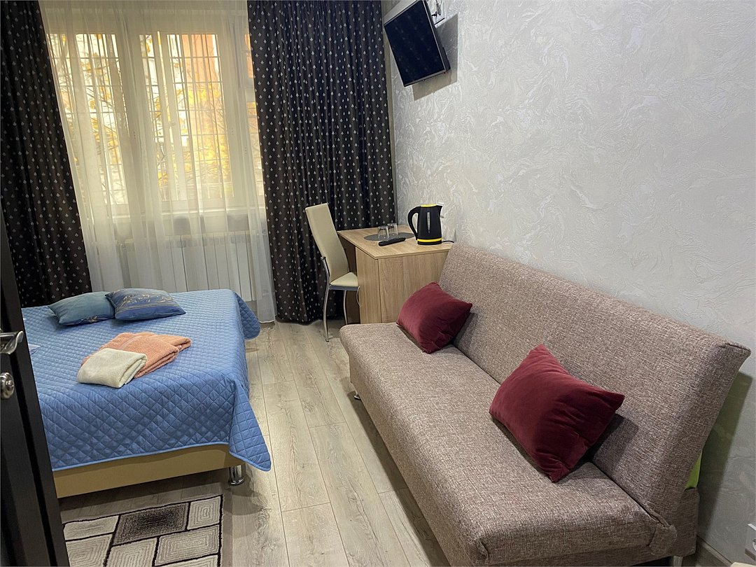 телевизор, Wi-Fi, интернет, светильник, ванная комната, банные полотенца, тапочки, гигиенические средства, двуспальная кровать, унитаз, раковина, душ, кулер на этаже, вид во двор, туалетные средства, туалет, телевизор с плоским экраном, мини-холодильник, гостиничная парфюмерия, кресло-кровать, без питомцевВ гостиничном номере
