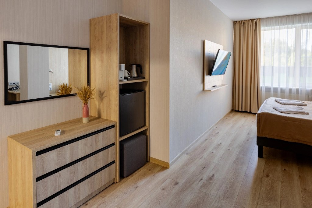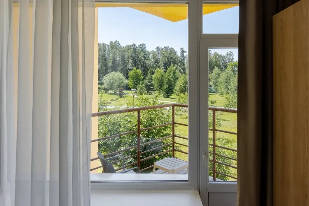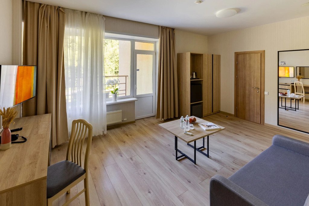 Путешествие с паройОтличное место для отдыха!Прекрасный курорт! Близко, чудесный сосновый воздух, лес, лавочки, территория полностью обустроена. Питание шведский стол - разнообразно, вкусно, на любой выбор. Номер был с балконом. Уборка ежедневно, смена белья через 3 дня. Отличное лечение (входило в стоимость) - массаж (огромное спасибо массажисту Роману), грязи, физиотерапия, галокамера. Бассейн и сауна тоже входили в путевку. Мы уже 7 лет здесь отдыхаем, имеем карту на скидку 20%, а также плюс скидка пенсионерам тоже 20%. Так что прямой резон отдыхать здесь. Ну и главное, здесь тихо, нет шумов. Птички поют за окном и сосны... Лучше места нет!...