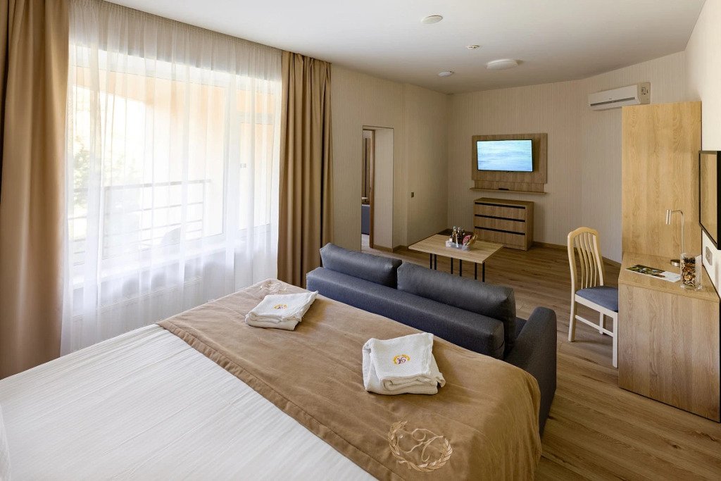 Путешествие с семьейКурорт Красная ПахраОтдыхали в марте с семьей на выходных. Курорт очень понравился: комнаты чистые, свежий ремонт, номера с балконом. Красивая природа, река. В ресторане кормили отменно, молодцы все сотрудники ресторана. Номер у нас был люкс двухкомнатный. В ванной комнате находились все необходимые принадлежности.Wi fi ловил отлично. Бесплатная охраняемая парковка. Удобно, что при бронировании оплата только 30%, все остальное по заезду на курорт. Большой бассейн с возможностью неограниченного посещения и сауна рядом, народу тоже не много, особенно с утра. Полотенца в бассейне выдают. Мы заехали в пятницу, гостей встречали шампанским. Вечером проходила дискотека. Обязательно вернемся еще раз!