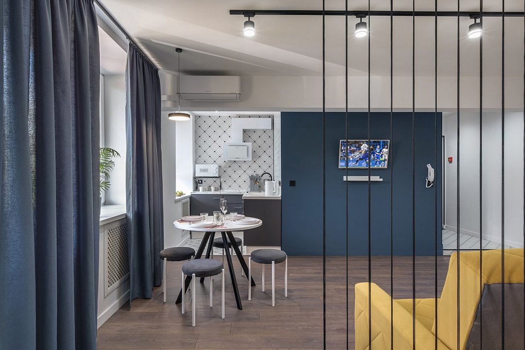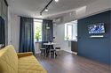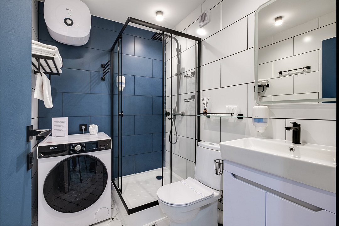 Wi-Fi, телефон, кондиционер, фен, плита для приготовления пищи, микроволновая печь, утюг, ванная комната, халаты, банные полотенца, тапочки, косметические средства, балкон, кровать «Queen size», гладильная доска, стулья, гардеробная, письменный стол, обеденный стол, зеркало, набор посуды, обслуживание номеров, стиральная машина, чайник, питьевая вода, обеденная зона, вид во двор, ламинат, кухонная посуда, столовые приборы, мини-холодильник, мини-кухня, телевизор со Smart TV, двуспальный раскладной диван-кровать, вешалки-плечики, затемняющая штора, раскладная одноместная кроватьВ студии