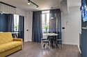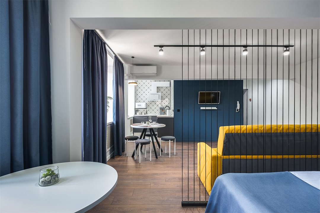 * площадь номера - 43 кв.м. * двуспальная кровать 160*200 * дополнительные места (двуспальный диван и раскладушка) - по запросу * белоснежное постельное белье и комплекты полотенец * Wi-Fi, телевизор, кондиционер, фен * гардеробная, рабочий стол и кресло * обеденный стол и стулья * ванная комната с душем * стиральная машина, гладильная доска, утюг * косметические средства и тапочки * халаты - по запросу * кухня: плита, холодильник, чайник, чай/кофе * ежедневная уборка номера - по запросу Номер студия — это отличный вариант для проживания семьи с детьми. ПРИ ЗАЕЗДЕ ВЗИМАЕТСЯ ДЕПОЗИТ 2000 РУБ.Услуги и удобства