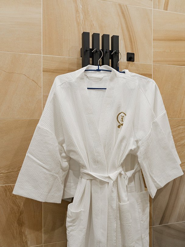 - уютные халаты из натурального хлопка и мягкие тапочки;