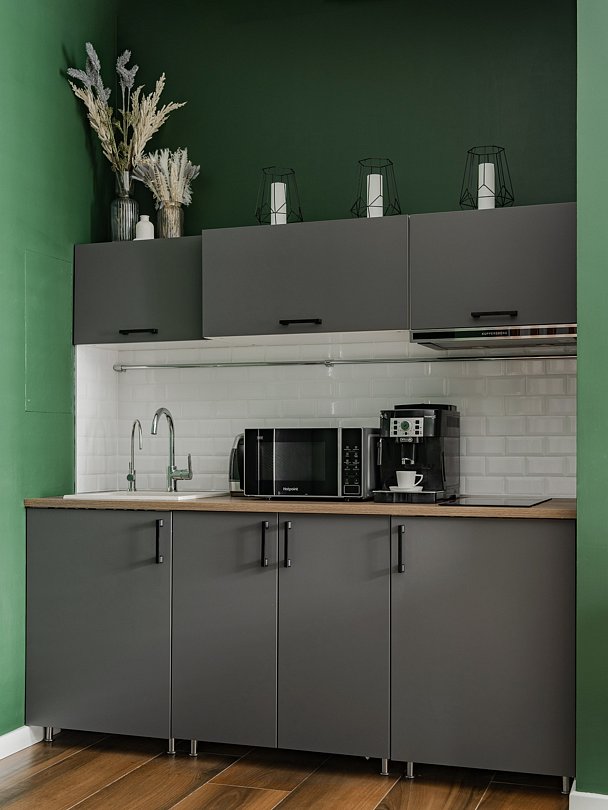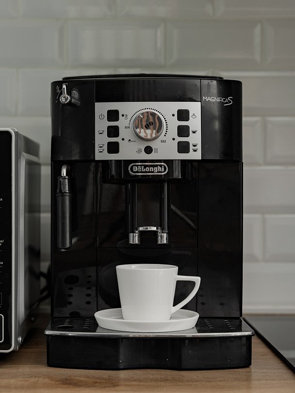 - все для приготовления пищи и даже кофемашина, в которой можно приготовить свежий ароматный кофе из натуральных зерен;
