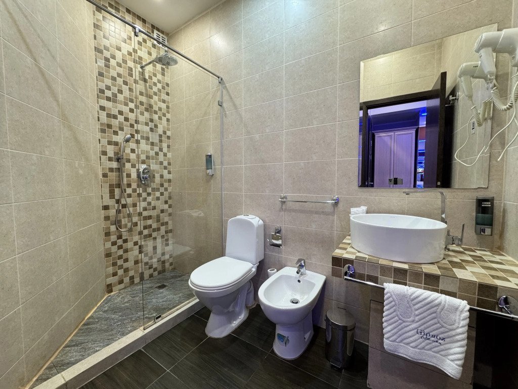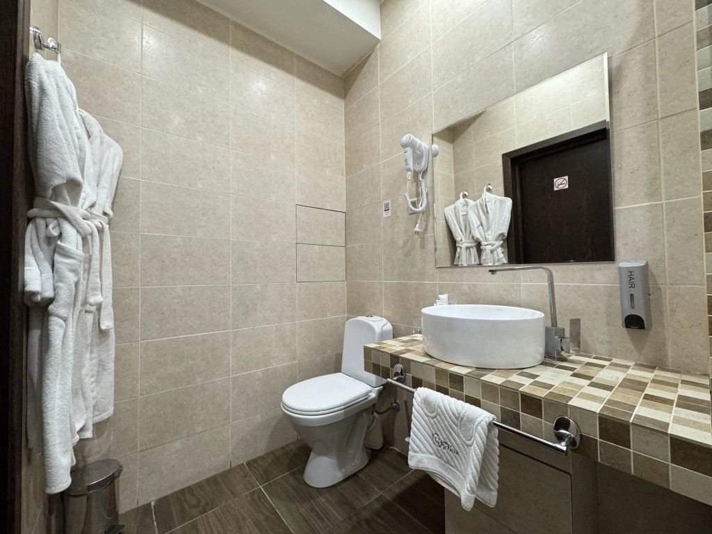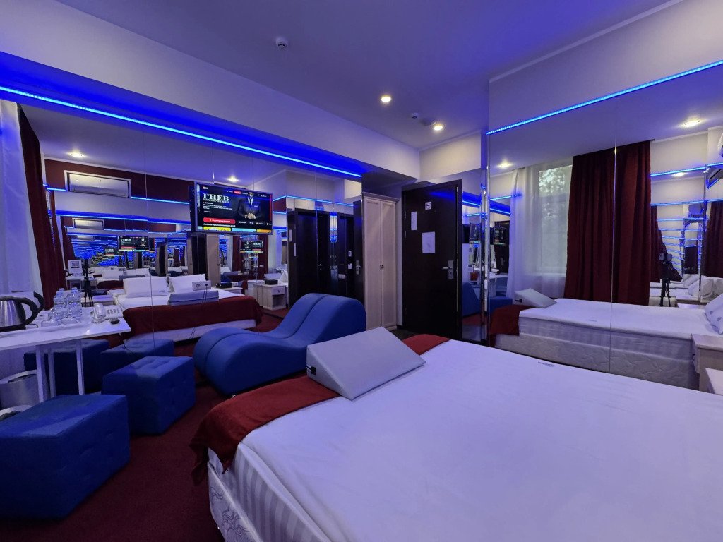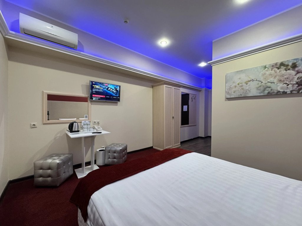 Номер уютно обставлен и оснащён необходимым, чтобы отдохнуть после долгого и насыщенного дня. Имеются DVD-плеер, телевизор и тапочки. Перечисленные услуги есть не во всех номерах.