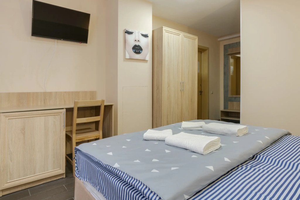 В номере вы найдёте телевизор и халат. Перечисленные услуги есть не во всех номерах.