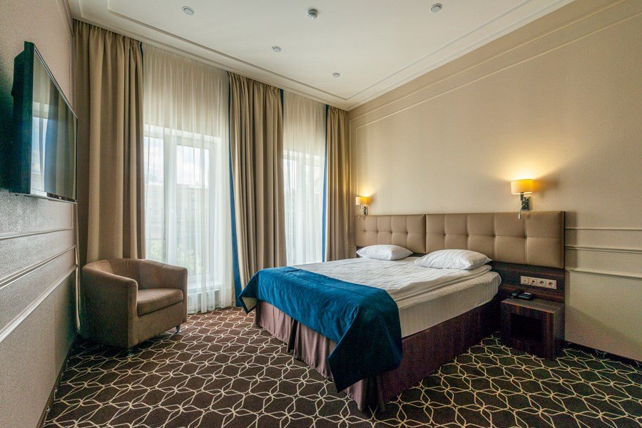 Стандартный двухместный номер повышенной комфортности и современным дизайном для одного или двух гостей (по Вашему выбору может быть меблирован одной двуспальной или двумя полутораспальными кроватями). Отличный вариант как для отдыхающих, так и для деловых людей. Номер для некурящихУслуги и удобства