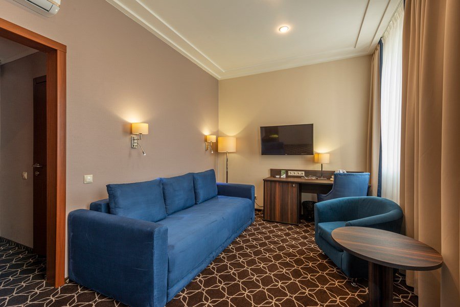 Просторный номер с современным интерьером и удобной планировкой, состоит из уютной гостиной и спальни с одной большой или двумя полутороспальными кроватями. Идеально подходит для тех, кто ценит сочетание комфорта и функциональности. Удачный выбор для семейного отдыха и путешествия с детьми. Подходит для проживания одного, двух или трех человек. Номер для некурящихУслуги и удобства