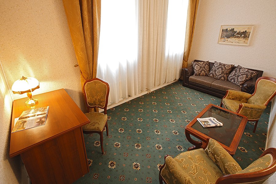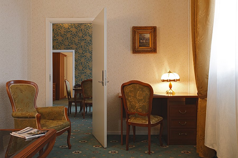 Просторный трехкомнатный номер в классическом стиле, декорированный камином располагает уютной гостиной, спальней и отдельным рабочим кабинетом. Отличный вариант как для романтического отдыха, так и для бизнес-туристов или размещения с детьми. Номер для некурящихУслуги и удобства