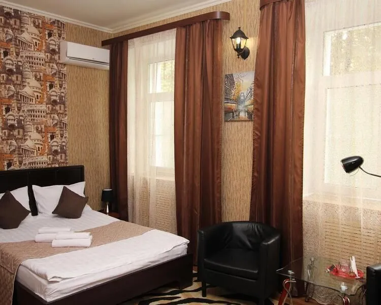 Уютный номер для размещения одного или двух человек. Площадь номера от 14 до 18 м2 В комнате одна большая кровать, телевизор, шкаф. В ванной комнате: фен, туалет, бесплатные гигиенические принадлежности, полотенец. Все номера оборудованы кондиционерами. В каждом номере нашего отеля работает бесплатный Wi-Fi.Услуги и удобства