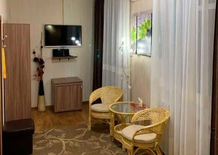 Однокомнатный номер категории «Полулюкс» для двухместного размещения. В ванной комнате: душ, туалет, гигиенические принадлежности, фен. В каждом номере нашего отеля работает бесплатный Wi-Fi. Все номера оборудованы кондиционерами.Услуги и удобства