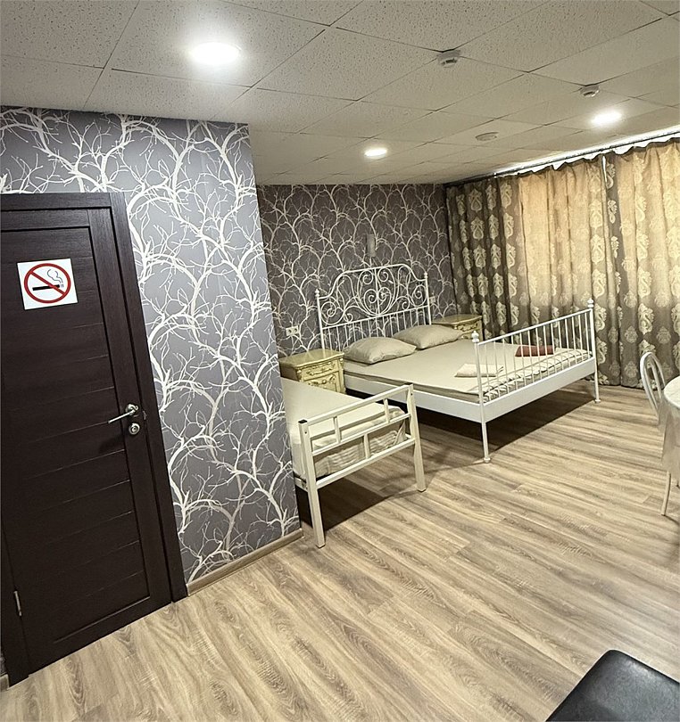 интерактивное телевидение, Wi-Fi, светильник, фен, халаты, банные полотенца, тапочки, двуспальная кровать, односпальная кровать, тумбы, гардеробная, вешалки, журнальный столик, багажная тумба, зеркало, комод, пуфики, унитаз, душ, вид на город, вид во двор, ламинат, стаканы, телевизор с плоским экраном, можно с питомцамиВ гостиничном номере