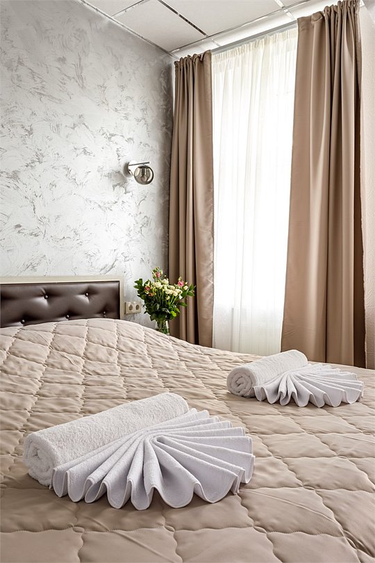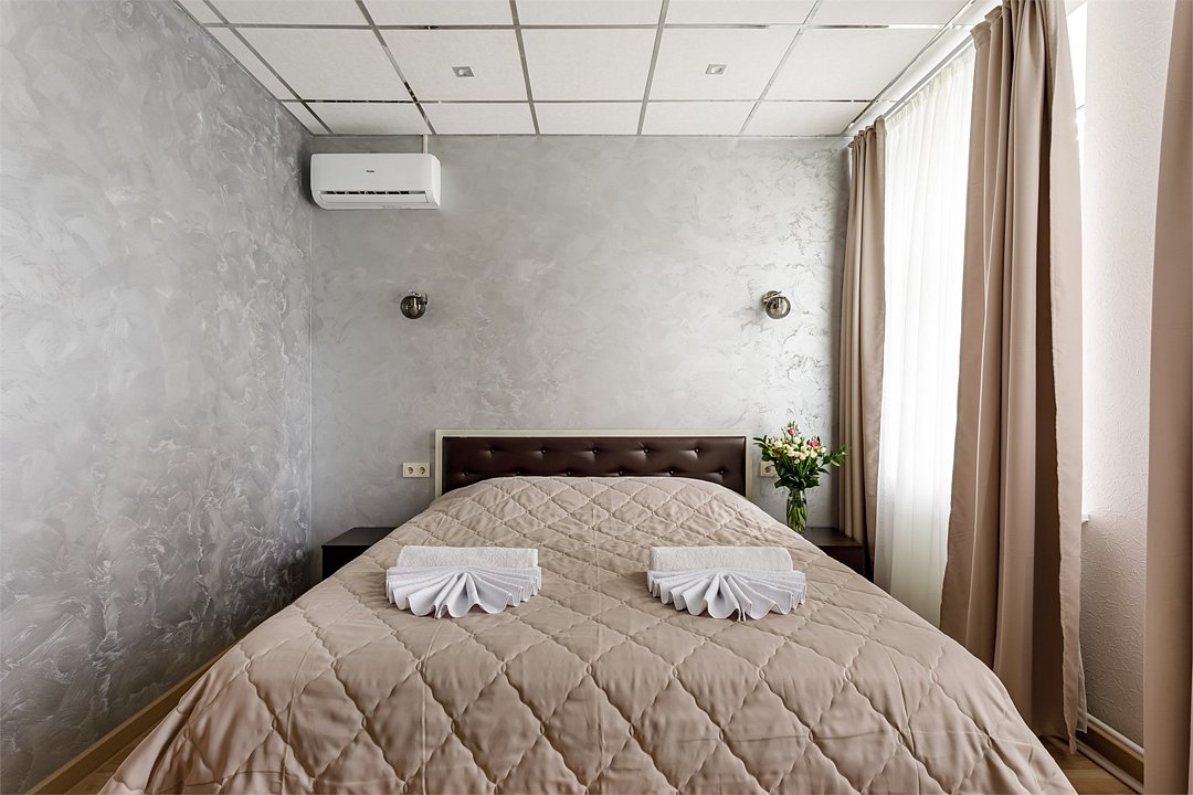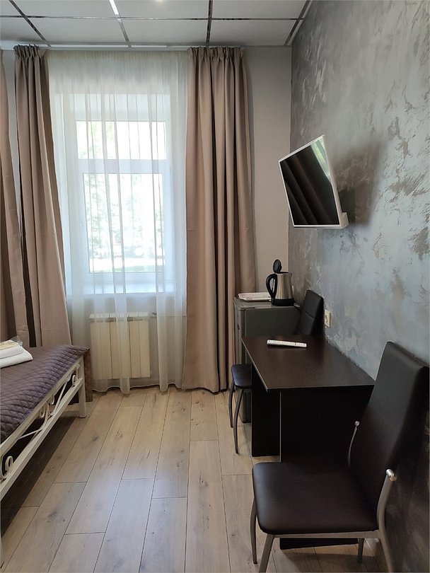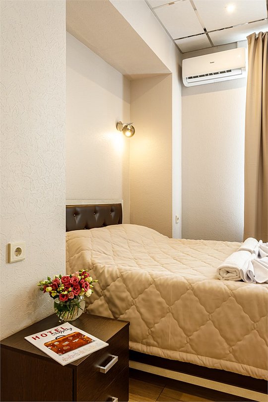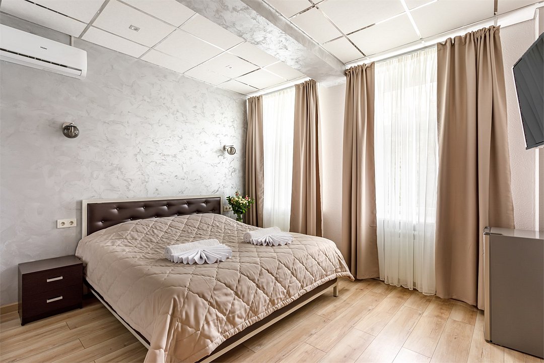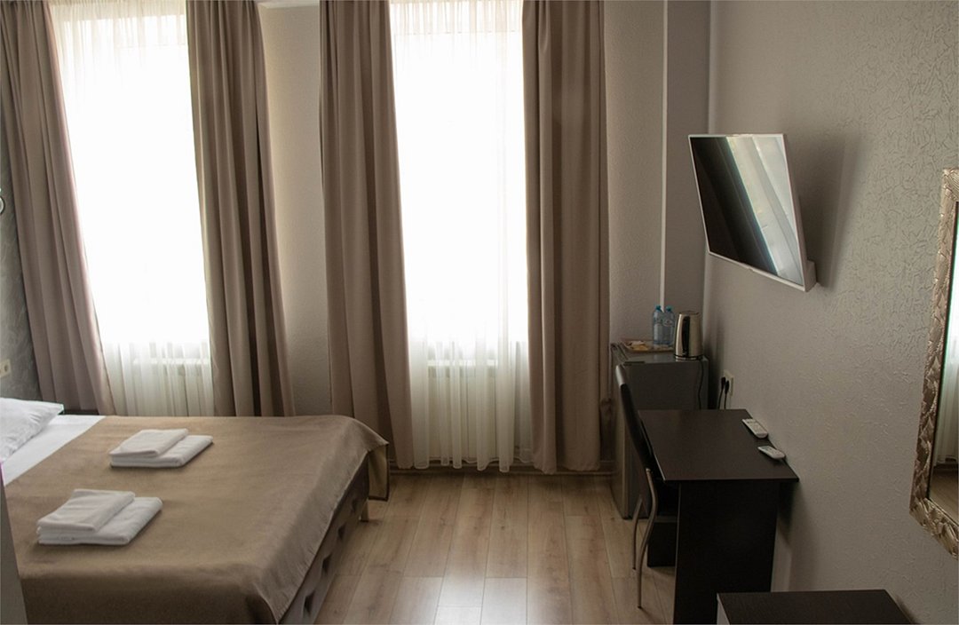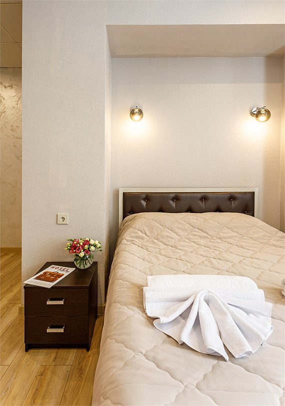 Стандартный двухместный ( однокомнатный номер) оформлен в современном стиле, интерьер выполнен в светлых тонах и со всем необходимым оборудованием для комфортного пребывания гостей.Услуги и удобства