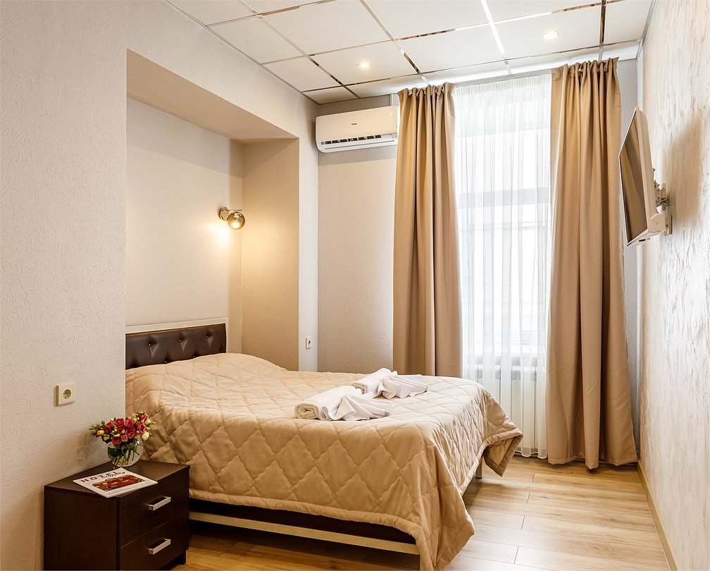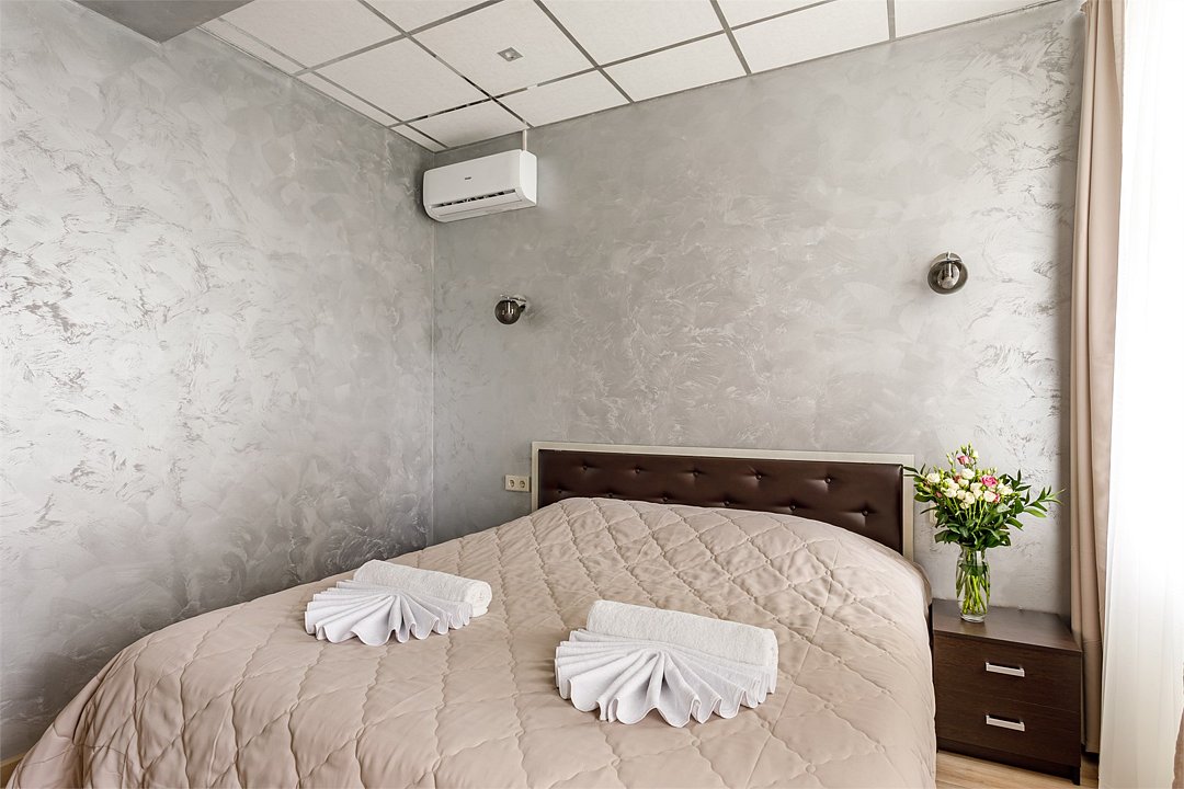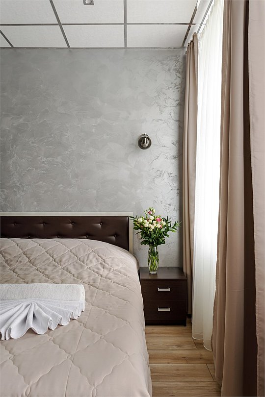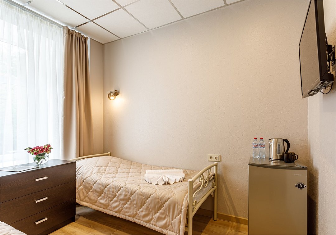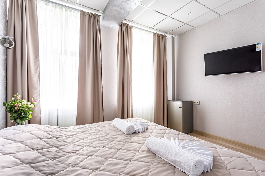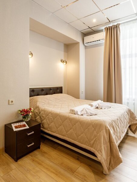 Стандартный двухместный ( однокомнатный номер) оформлен в современном стиле, интерьер выполнен в светлых тонах и со всем необходимым оборудованием для комфортного пребывания гостей.Услуги и удобства