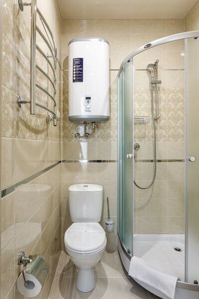 Wi-Fi, интернет, холодильник, кондиционер, светильник, фен, обогреватель, душевая кабина, санузел, водонагреватель, банные принадлежности, халаты, банные полотенца, тапочки, гигиенические средства, косметические средства, кровать «King size», шкаф для одежды, вешалки, зеркало, чайный набор, чайник, унитаз, раковина, душ, вид на город, кулер на этаже, вид во двор, ламинат, стул, стол, тумба, туалетные средства, туалет, цифровое тв, диван-кровать, раскладной диван, телевизор с плоским экраном, номер для некурящих, чайная станция, без питомцевВ номере