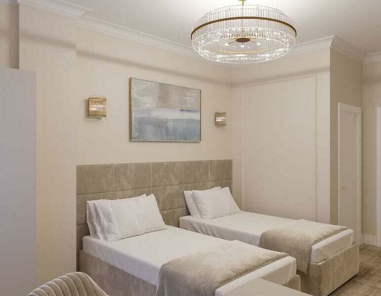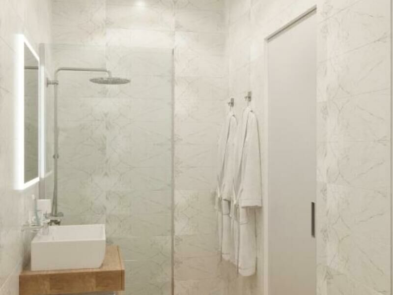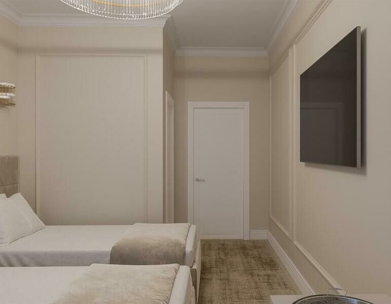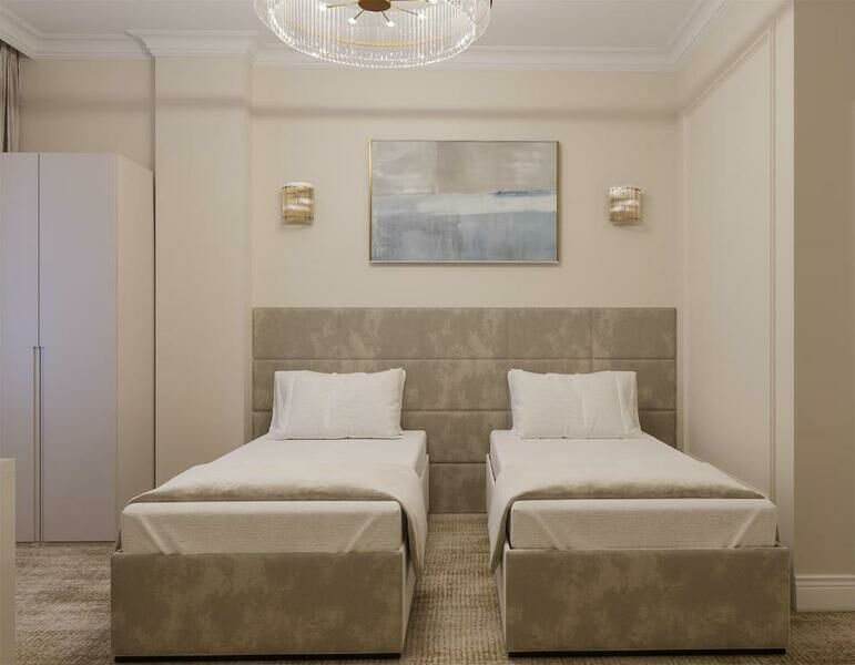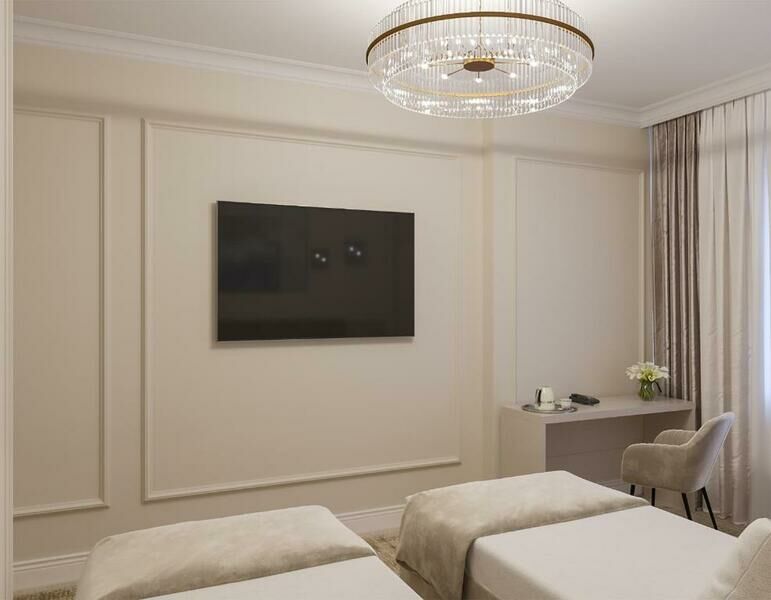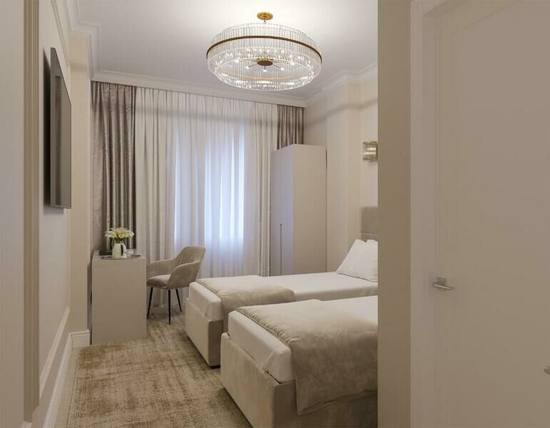 В номерах светлый стильный интерьер, выдержанный в белых и бежевых тонах. Комнаты оснащены кондиционером, душем, есть телевизор-ЖК, фен. В ванной комнате для отдыхающих подготовлены косметические наборы. Из некоторых номеров открываются красивые виды на город и исторический центр Москвы.