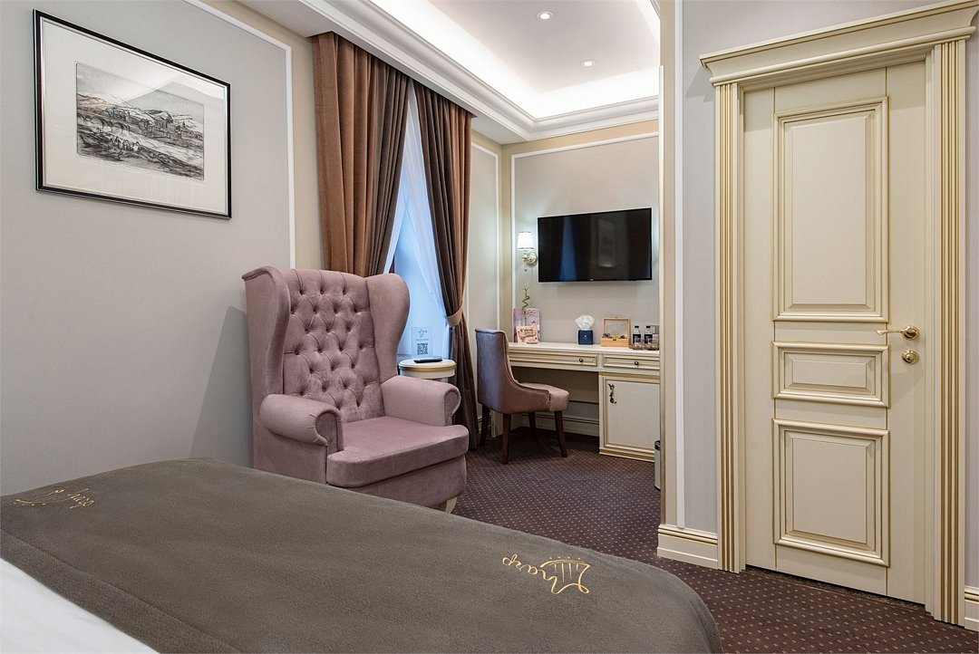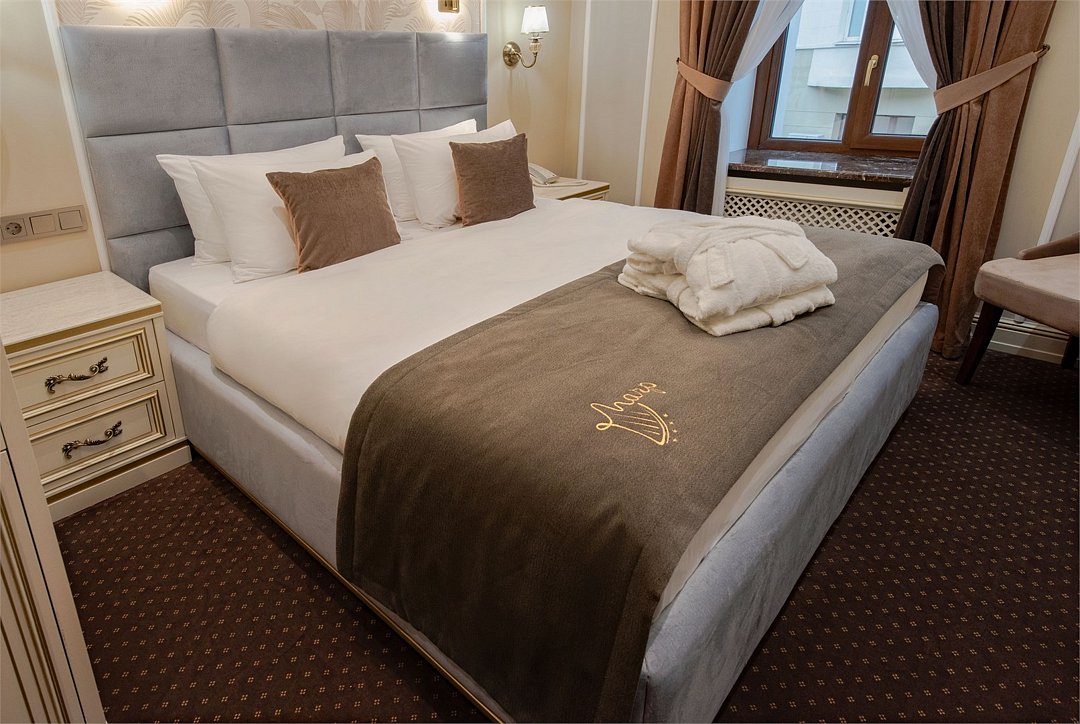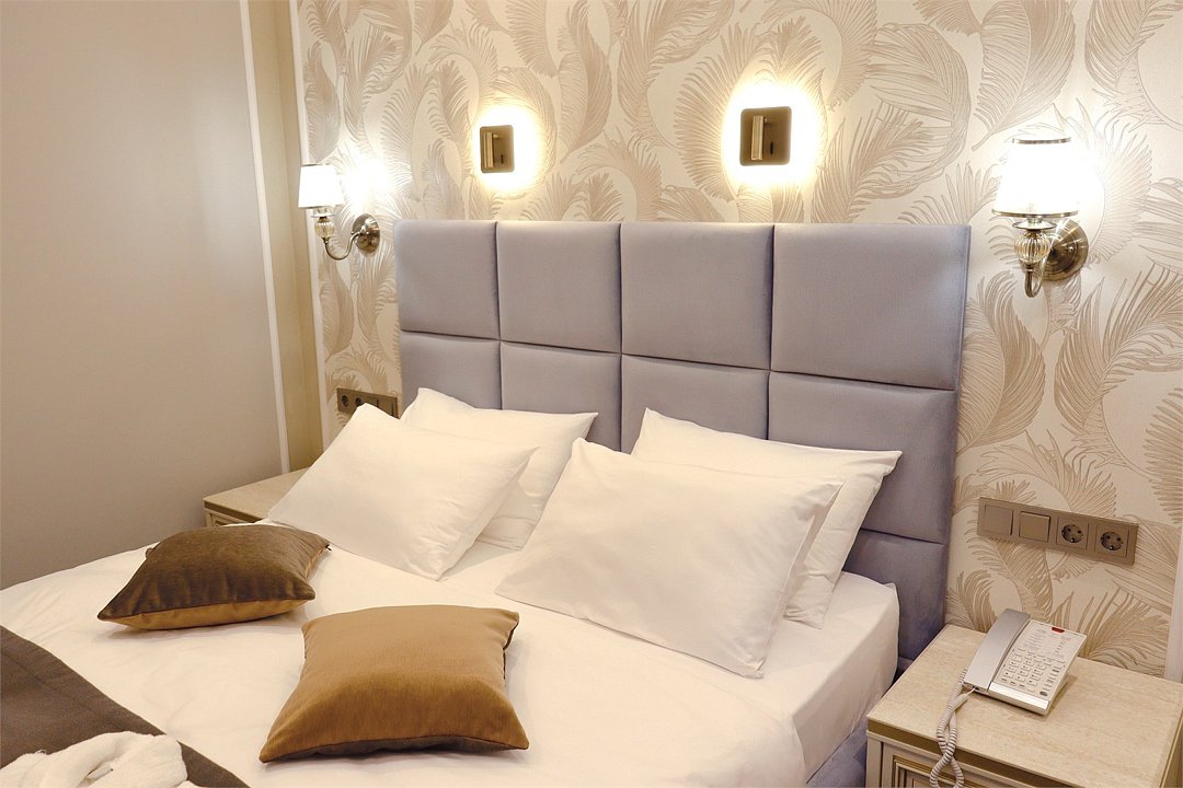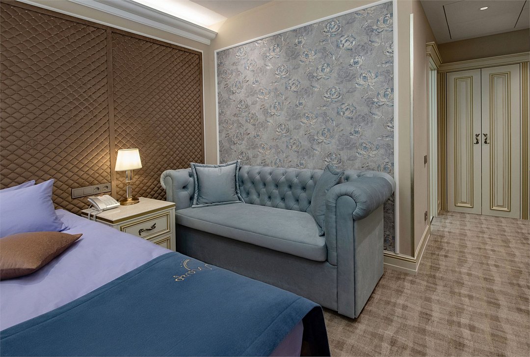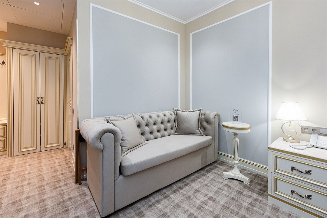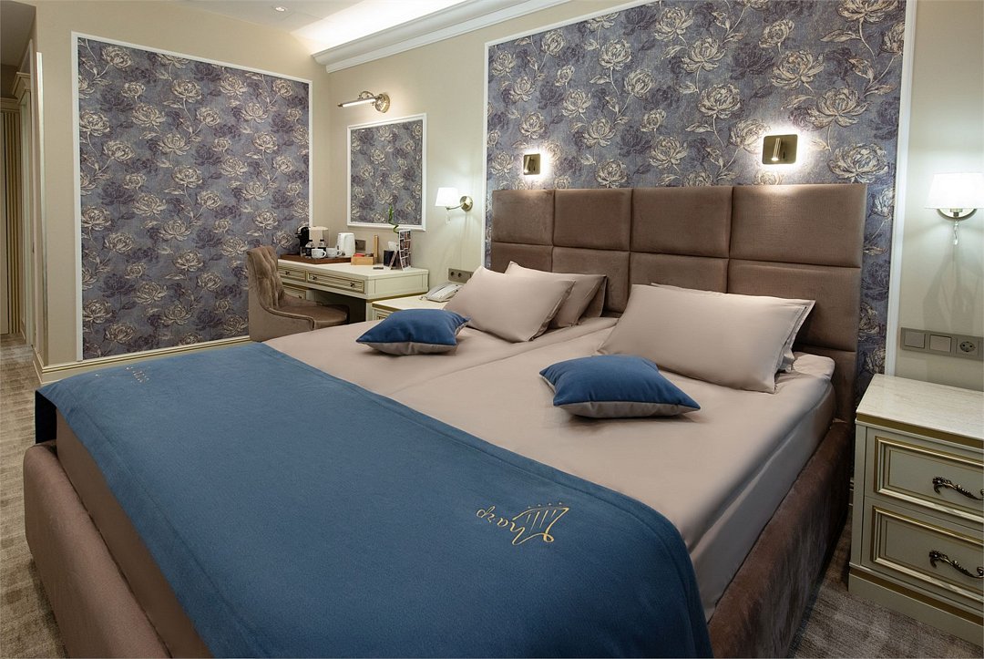 Номер повышенной комфортности с большой спальней и просторной ванной комнатой сделают ваше размещение поистине комфортным. Идеальное размещение для 2-х гостей, а также семьи с маленьким ребенком. Предоставляем по запросу детскую кроватку. Уважаемые гости, обращаем Ваше внимание, что детали интерьера и планировки в номерах данной категории могут отличаться, а также не во всех номерах данной категории имеется диван, который не раскладывается.Услуги и удобства