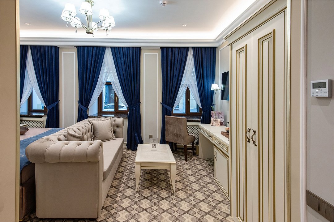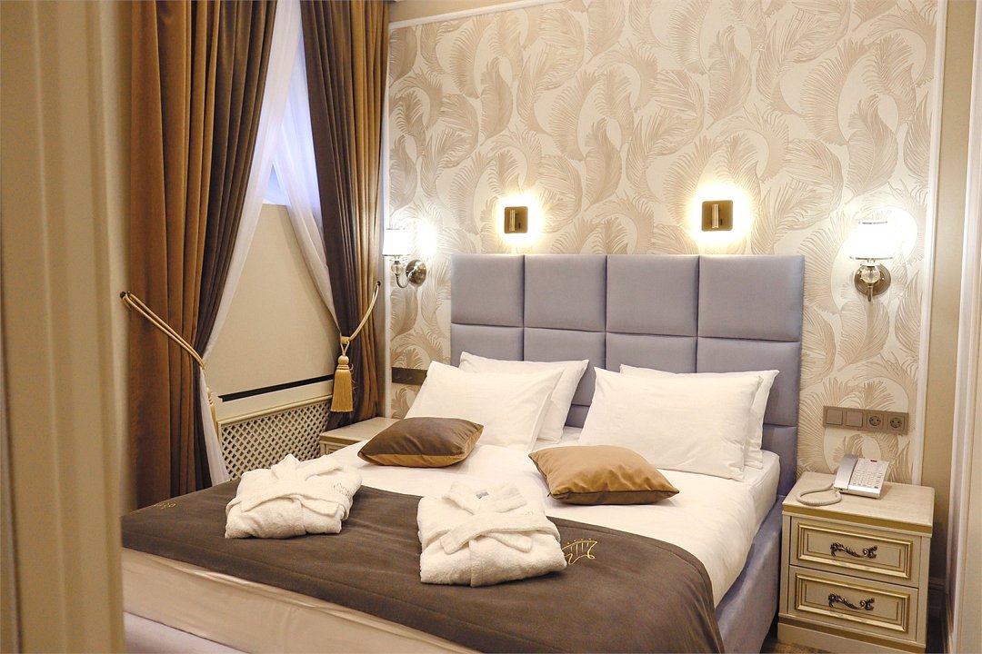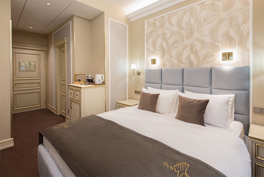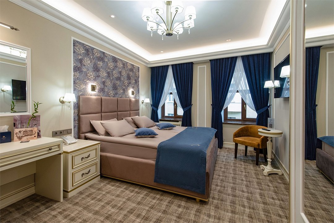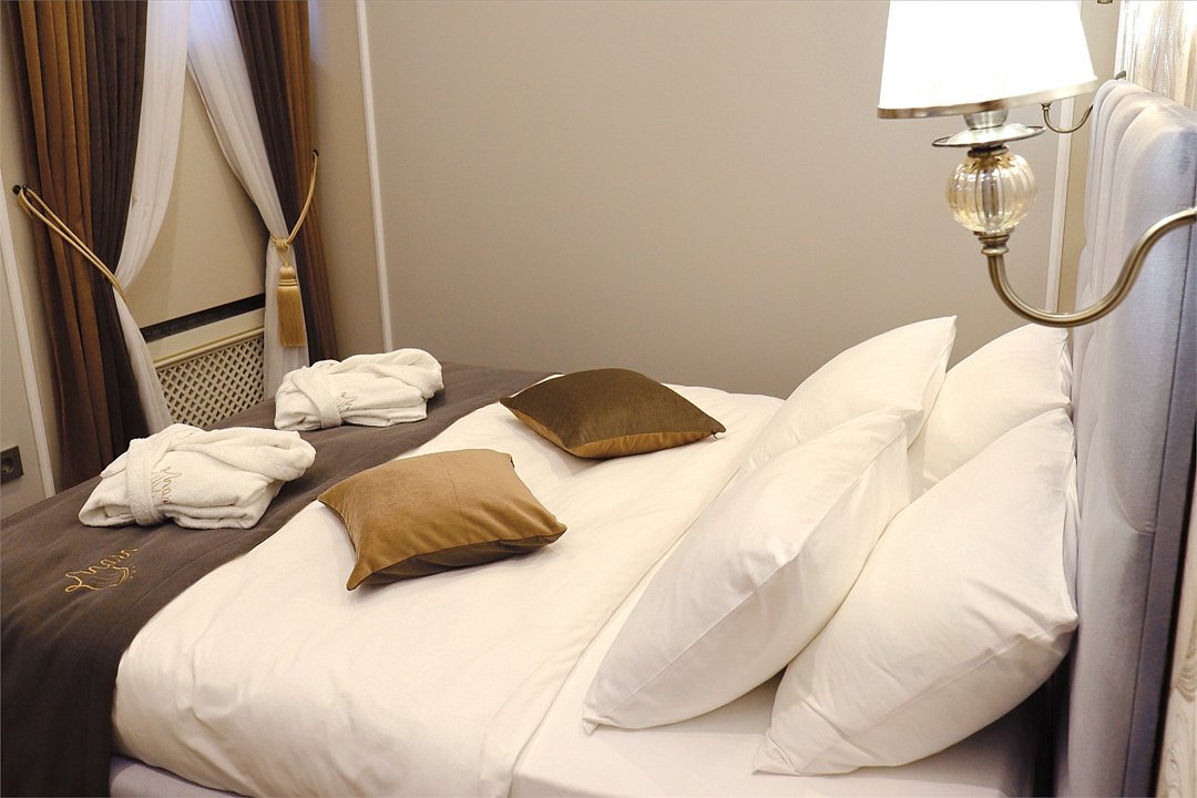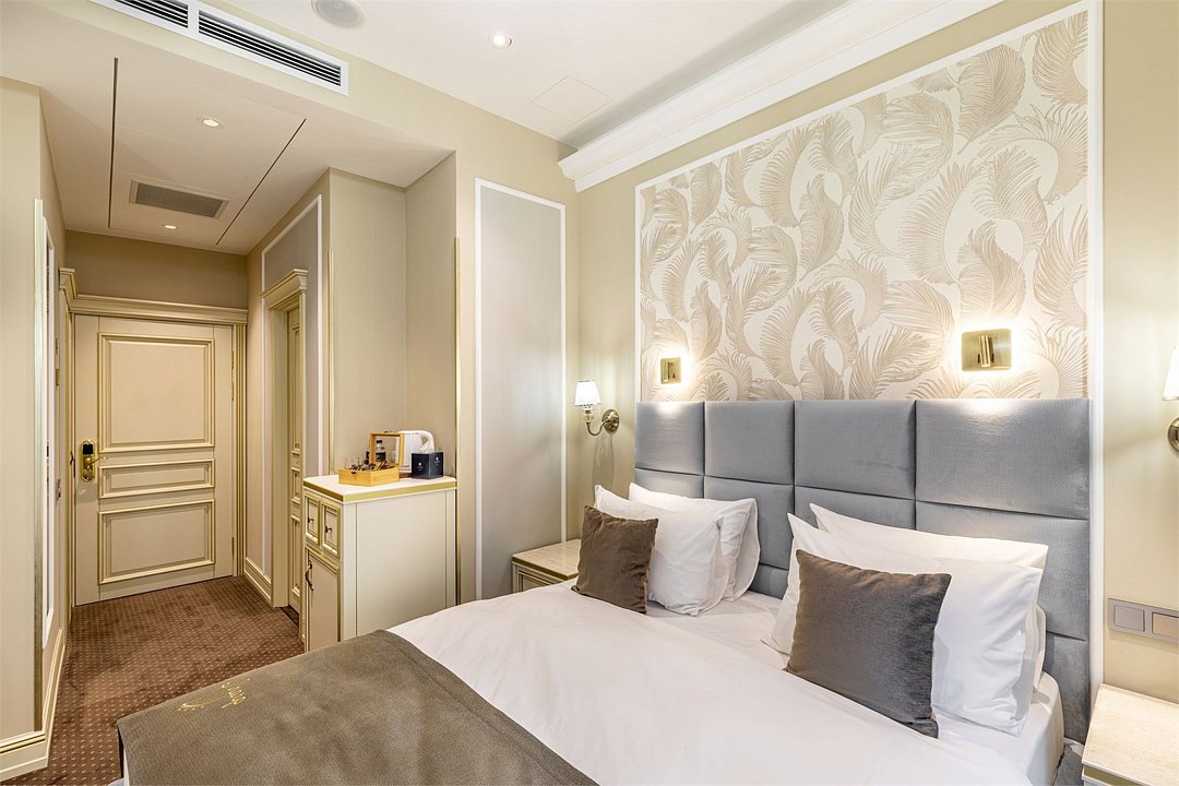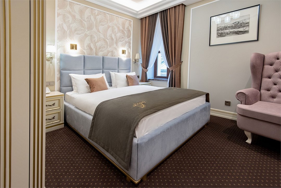 Номер повышенной комфортности с большой спальней и просторной ванной комнатой сделают ваше размещение поистине комфортным. Идеальное размещение для 2-х гостей, а также семьи с маленьким ребенком. Предоставляем по запросу детскую кроватку. Уважаемые гости, обращаем Ваше внимание, что детали интерьера и планировки в номерах данной категории могут отличаться, а также не во всех номерах данной категории имеется диван, который не раскладывается.Услуги и удобства