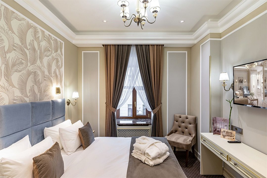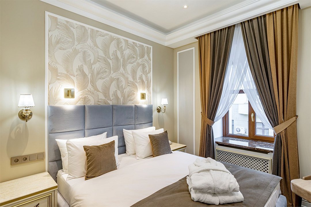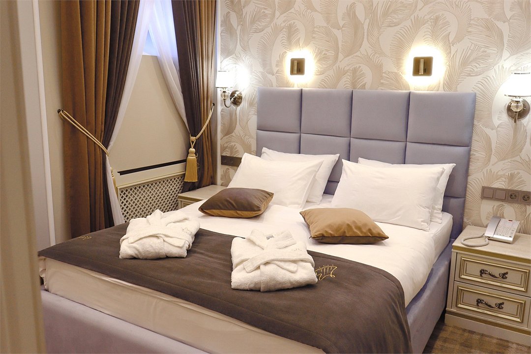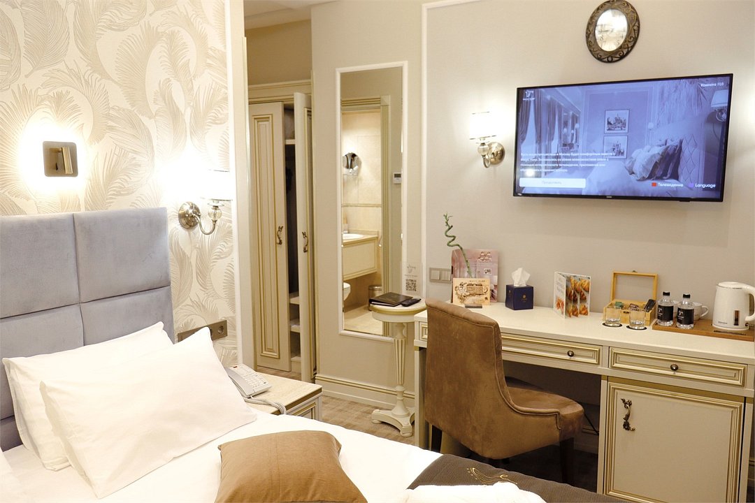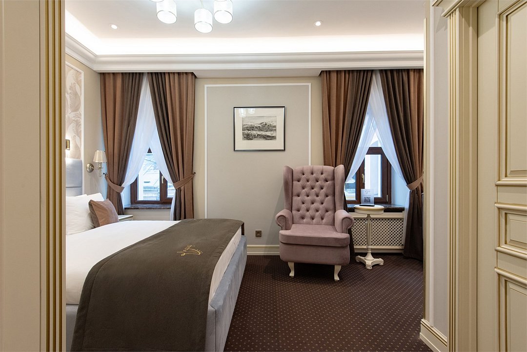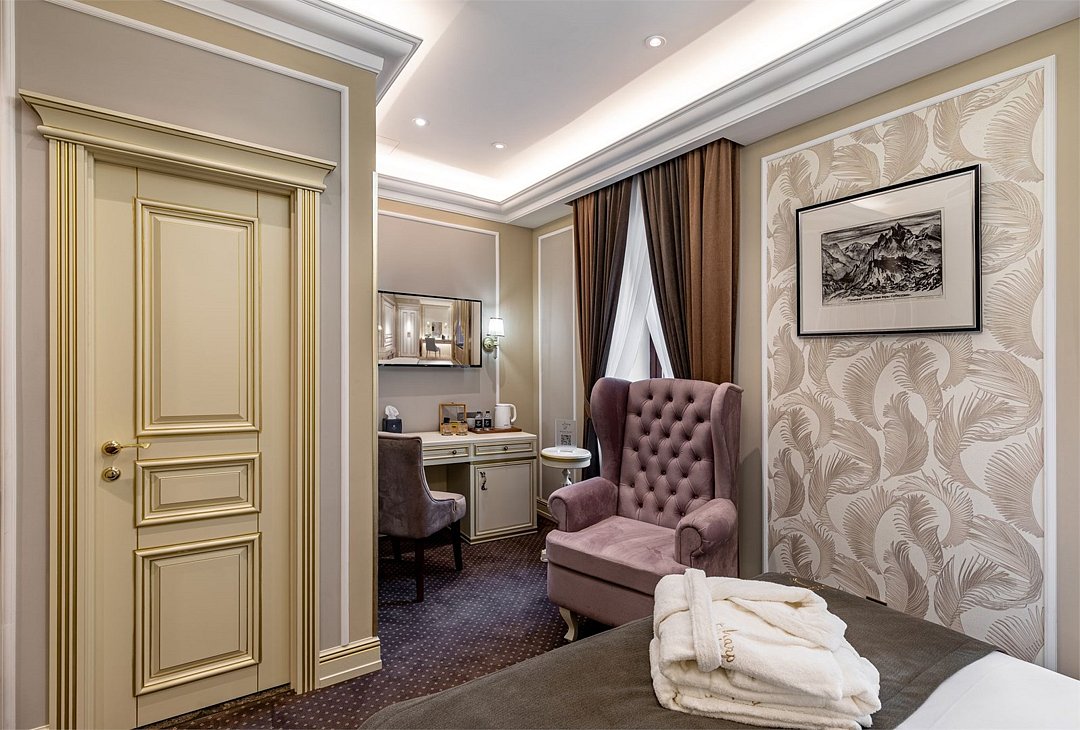 Номер повышенной комфортности с большой спальней и просторной ванной комнатой сделают ваше размещение поистине комфортным. Идеальное размещение для 2-х гостей, а также семьи с маленьким ребенком. Предоставляем по запросу детскую кроватку. Уважаемые гости, обращаем Ваше внимание, что детали интерьера и планировки в номерах данной категории могут отличаться, а также не во всех номерах данной категории имеется диван, который не раскладывается.Услуги и удобства