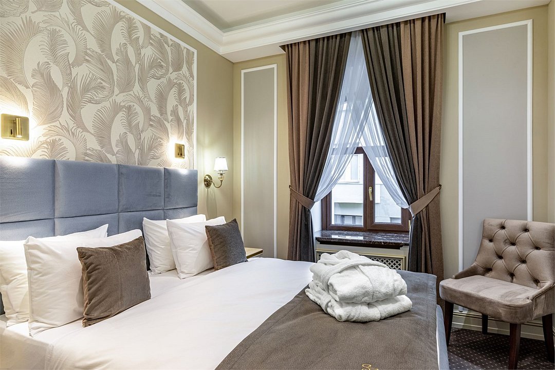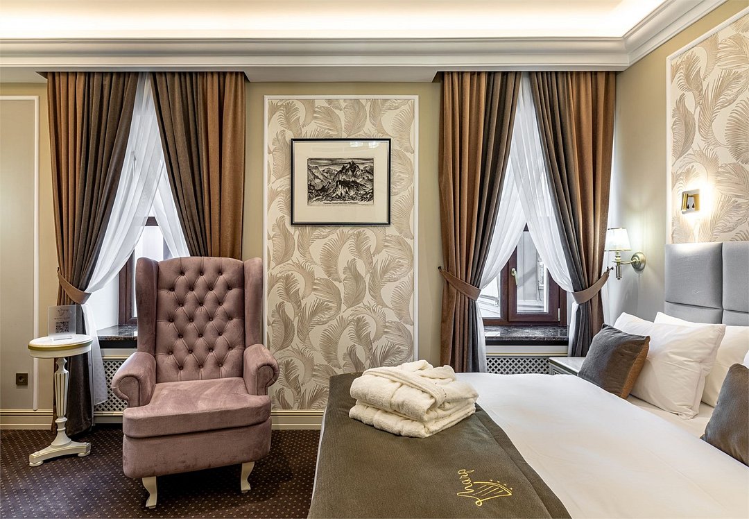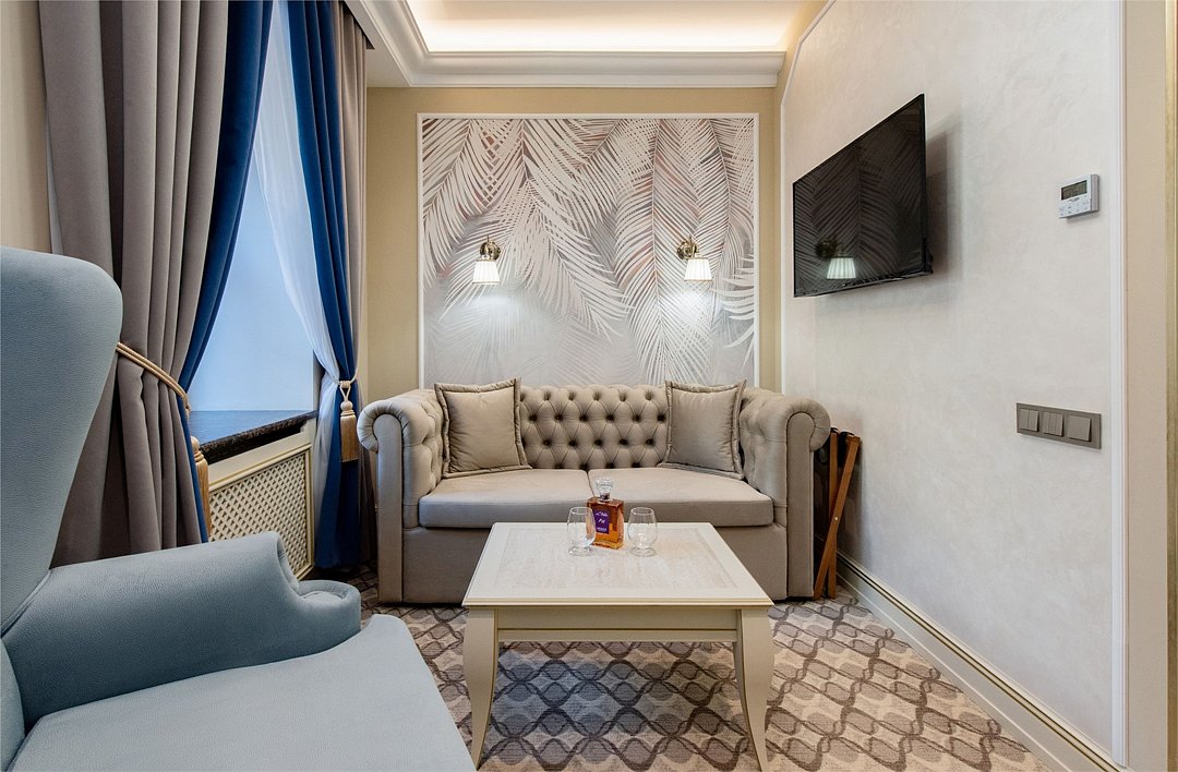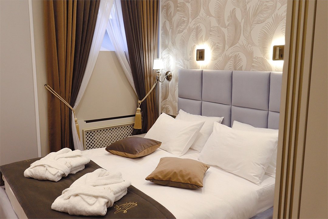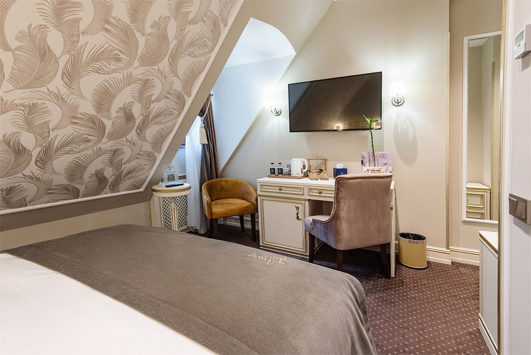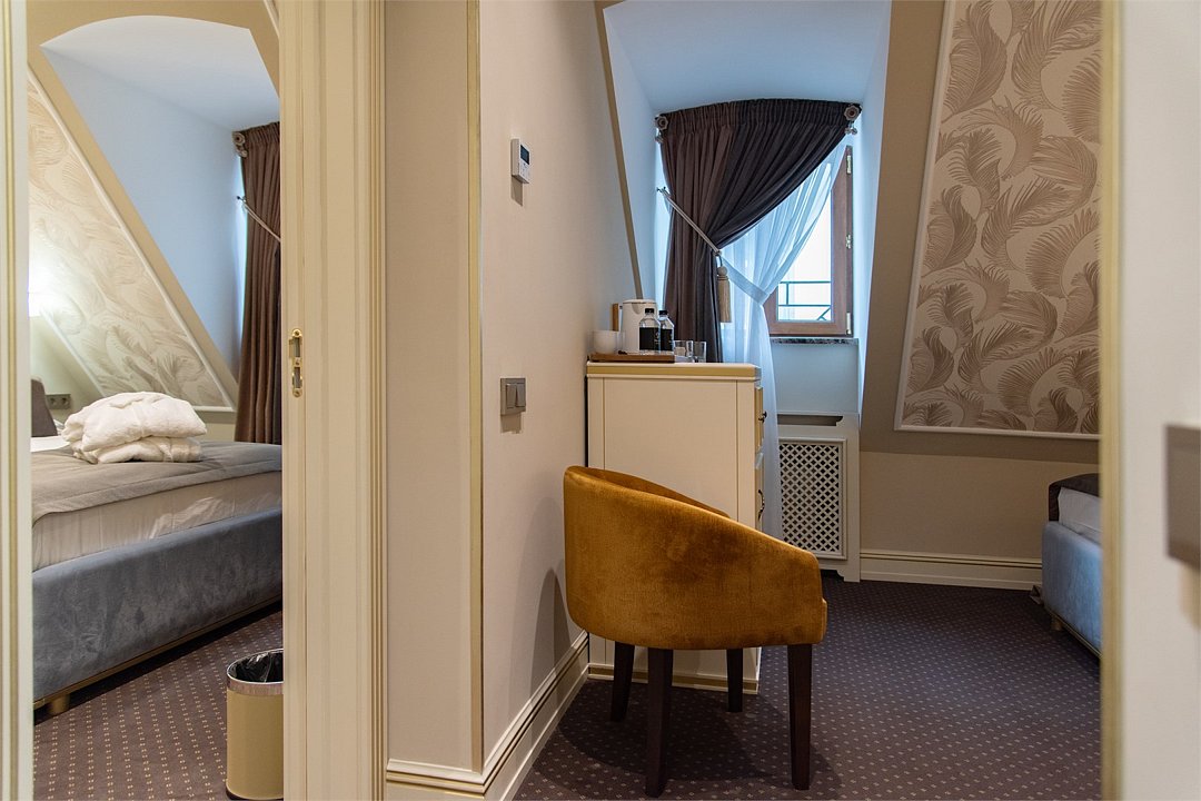 Номер повышенной комфортности с большой спальней c двумя раздельными кроватями и просторной ванной комнатой сделают ваше размещение поистине комфортным. Обращаем внимание, диван не раскладывается. Также имеется номер в данной категории, который расположен на 4 этаже - мансарда.Услуги и удобства