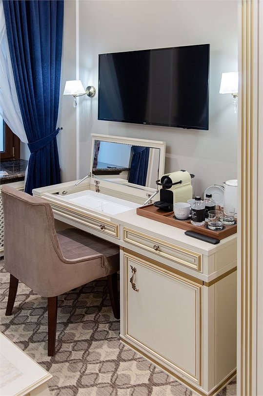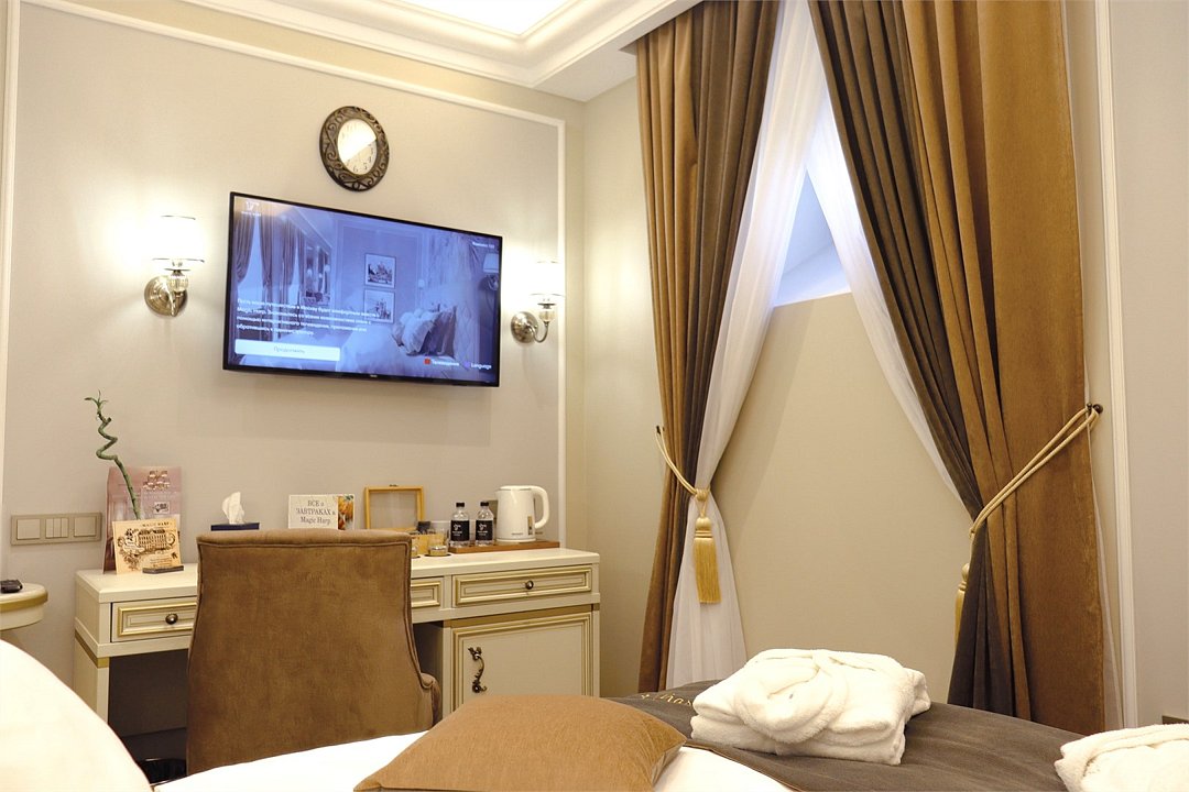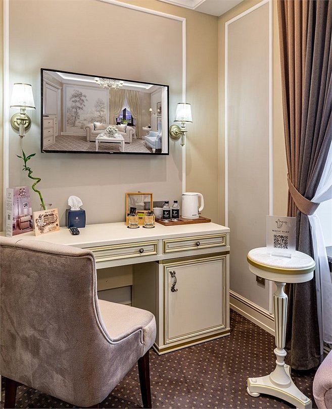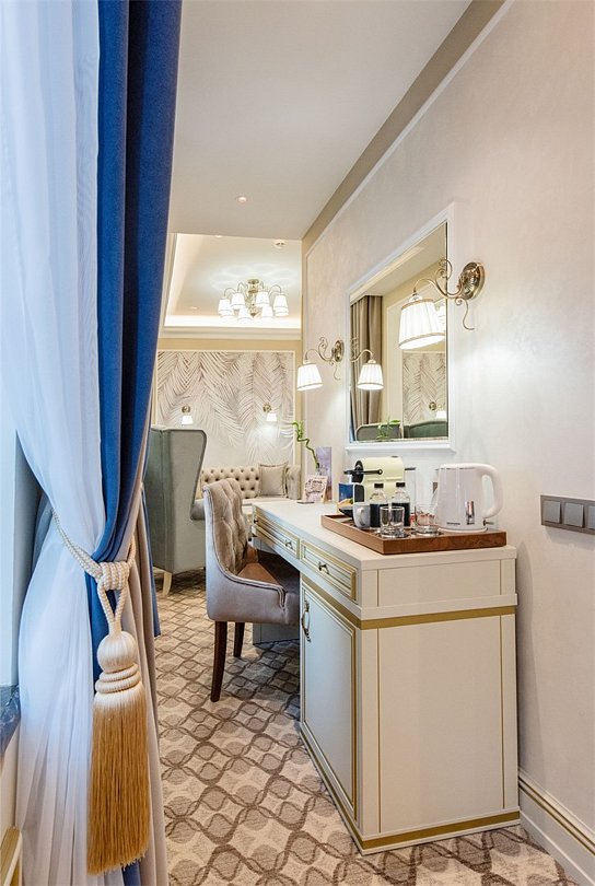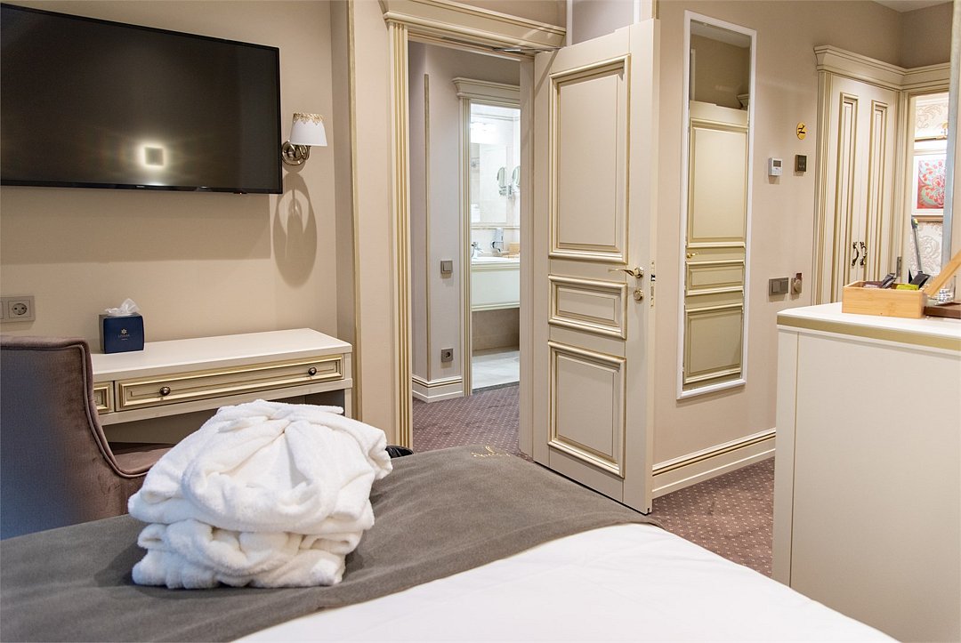 Лучший номер нашего отеля. Просторный, комфортный и с самыми дорогими элементами дизайна и декора. Уровень класса люкс во всём - от постельного белья, до косметики бренда Valentin YudashkinУслуги и удобства