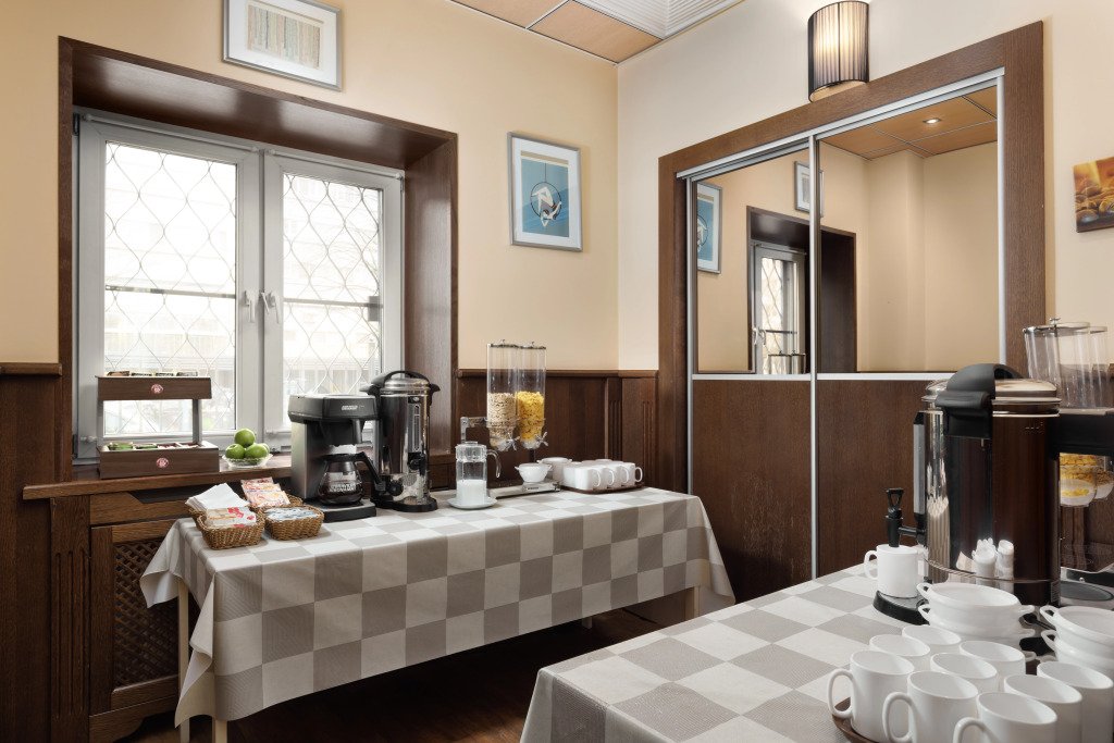 По утрам сервируется завтрак по системе «Шведский стол» с различными горячими и холодными блюдами, фруктами и выпечкой.